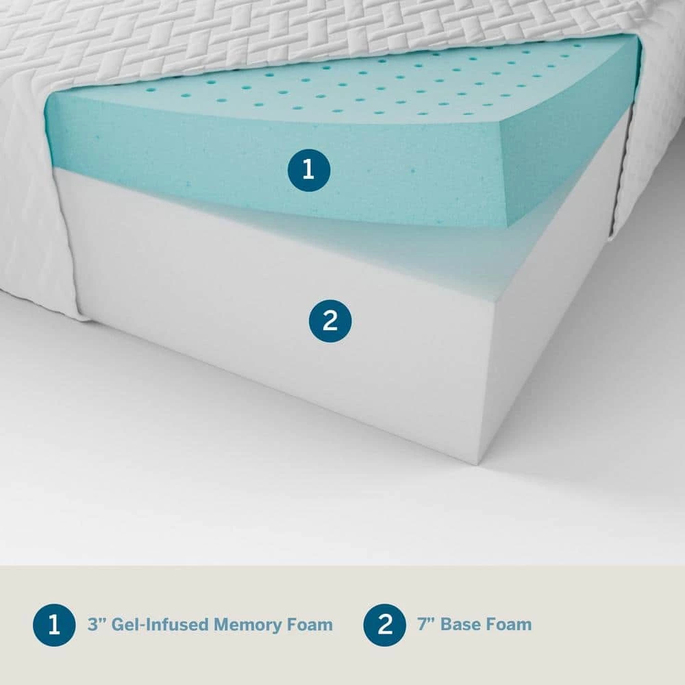 - MATTRESS COMPOSITION: 3″ gel memory foam, 7″ base foam