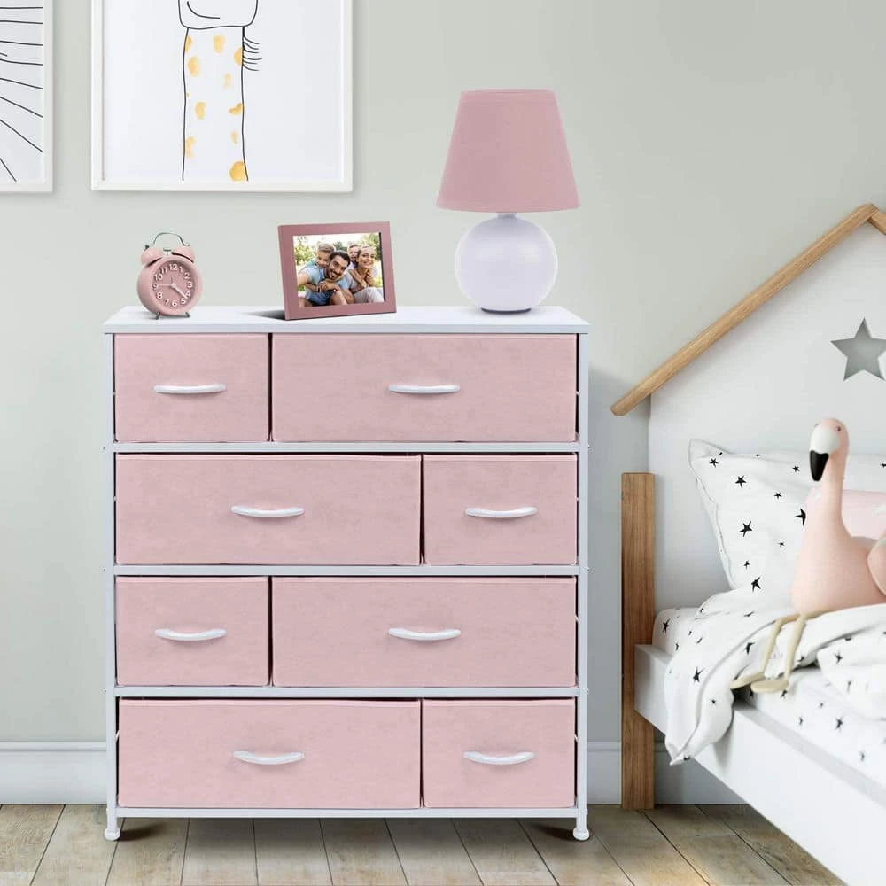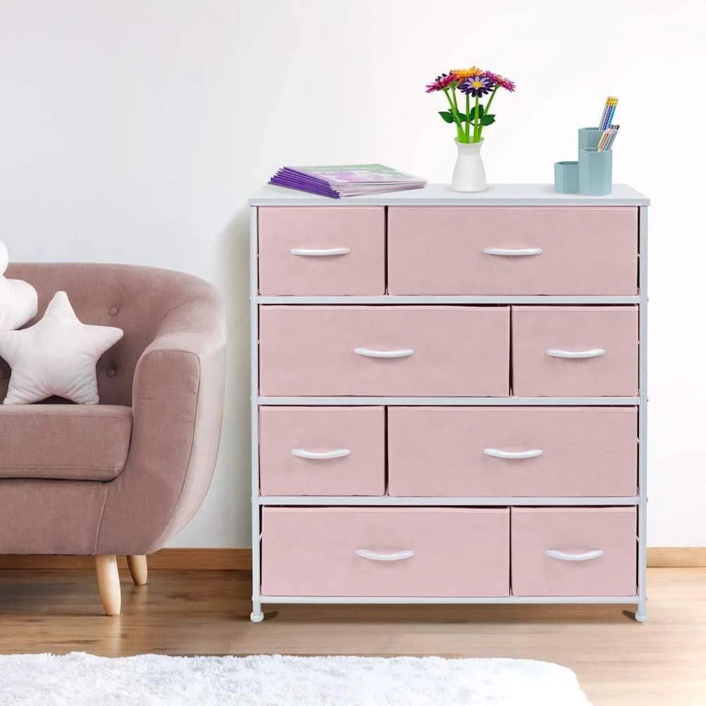 - 8-drawer dresser pink – style meets function with this dresser chest, complete with a wood surface and colorful storage-drawers – pairs beautifully with the Sorbus foldable furniture collection