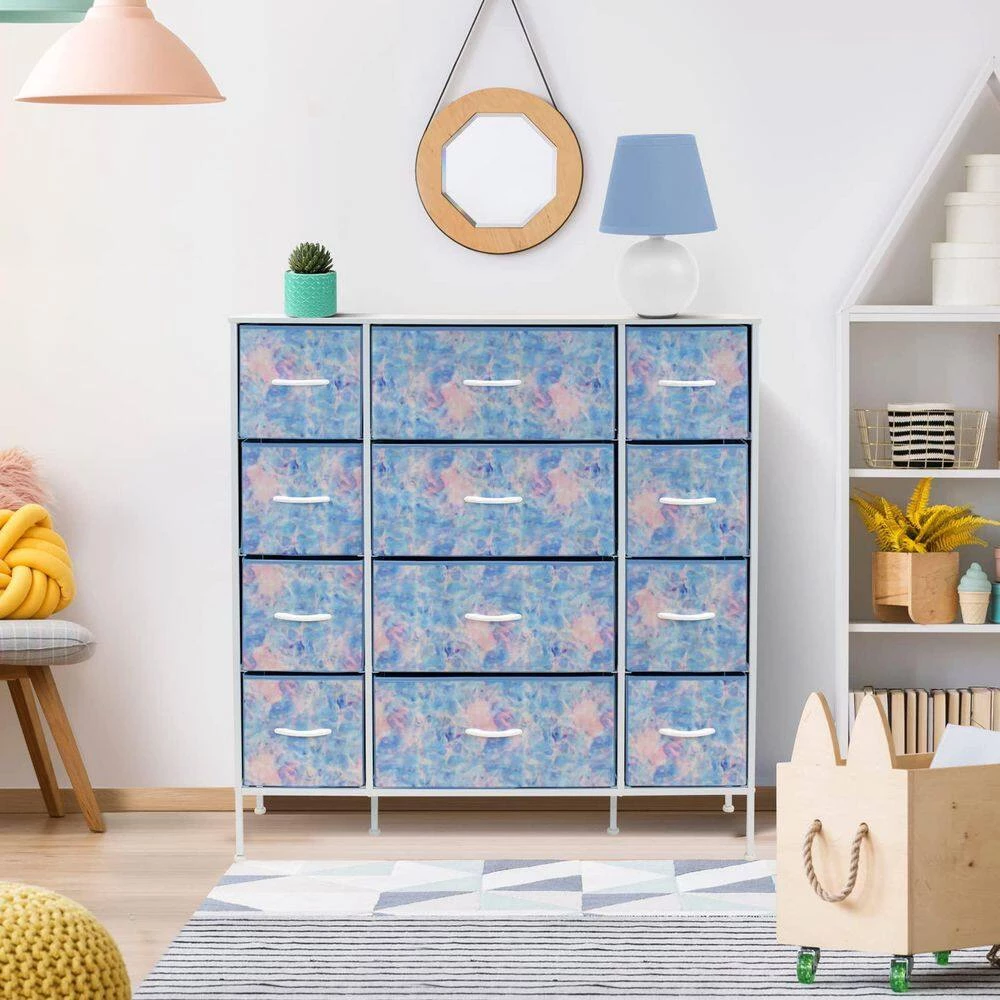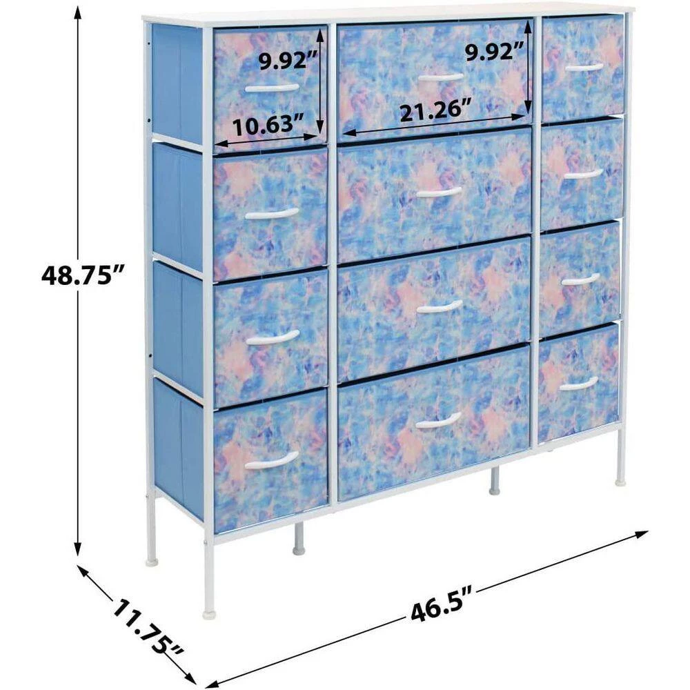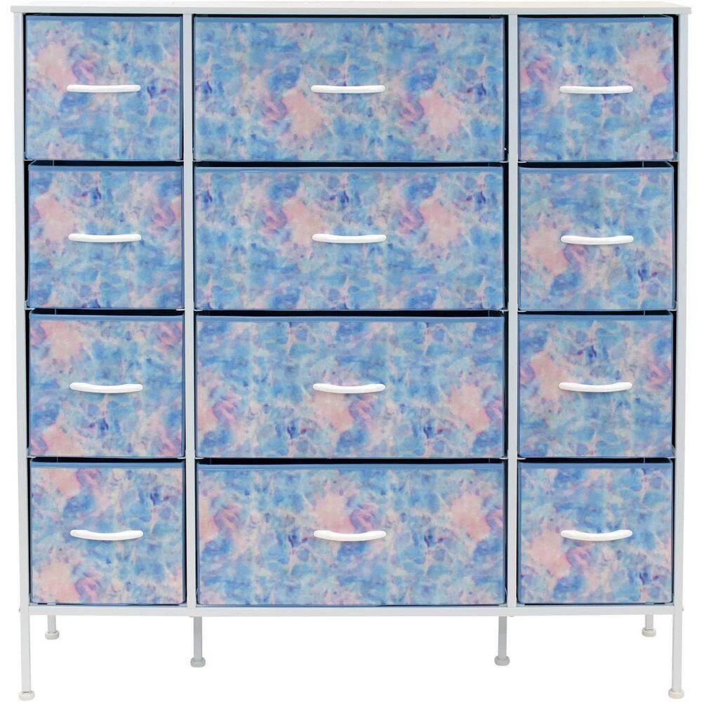 - 12-drawer dresser tie-dye blue – style meets function with this dresser chest, complete with wood surface and tie-dye print drawers