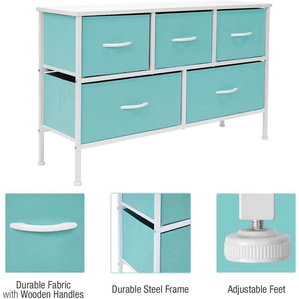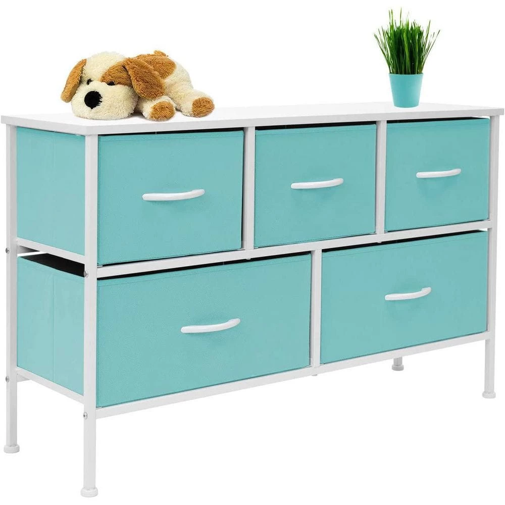 - 5-drawer dresser pastel aqua – style meets function with this dresser chest, complete with a wood surface and colorful storage-drawers – pairs beautifully with the Sorbus foldable furniture collection sold separately)