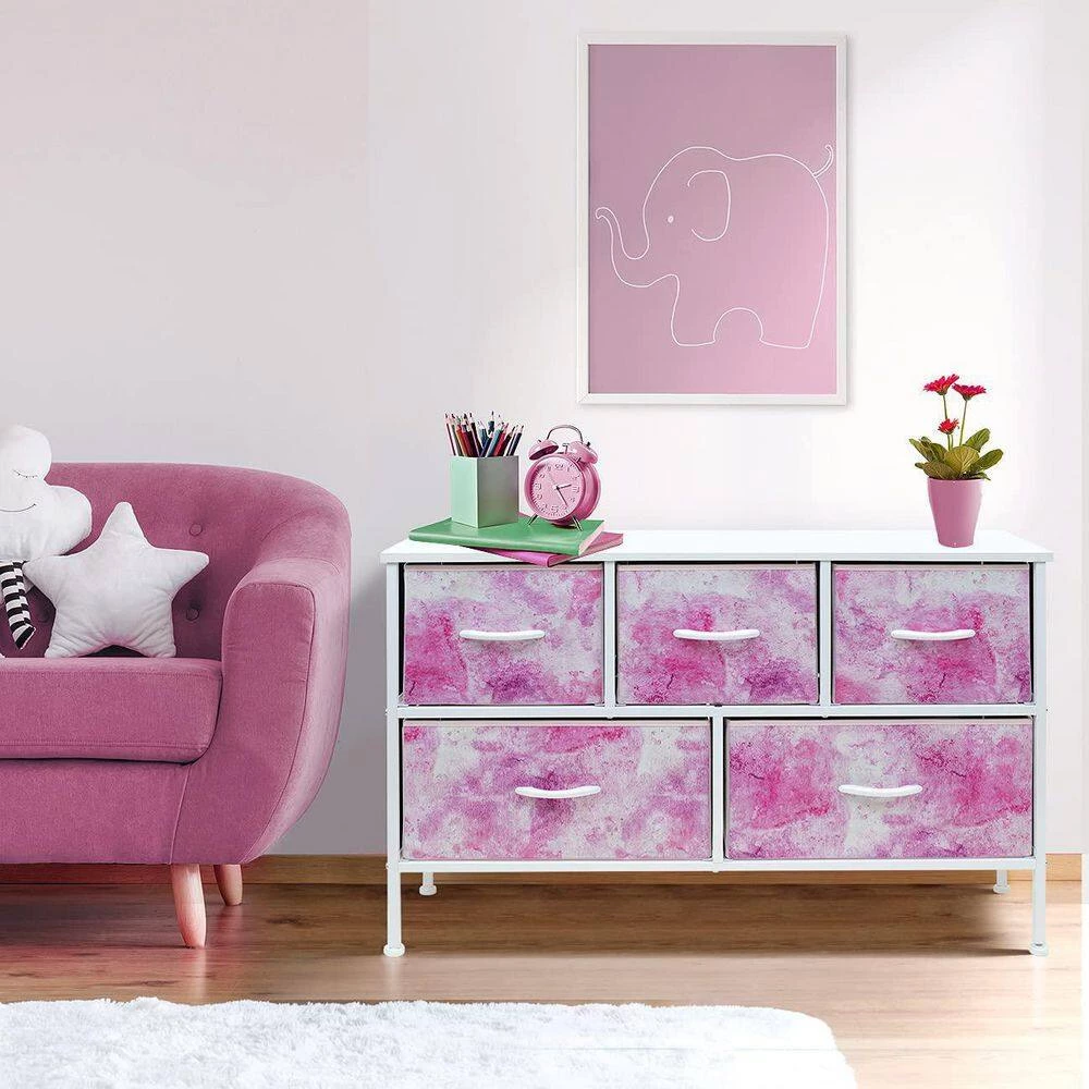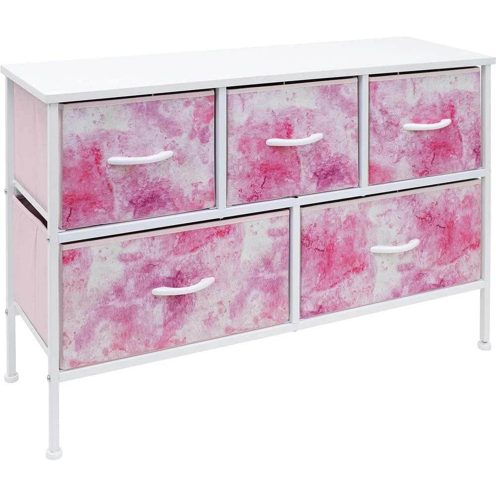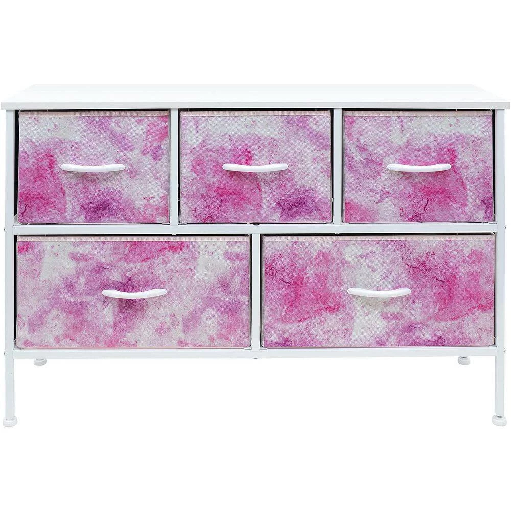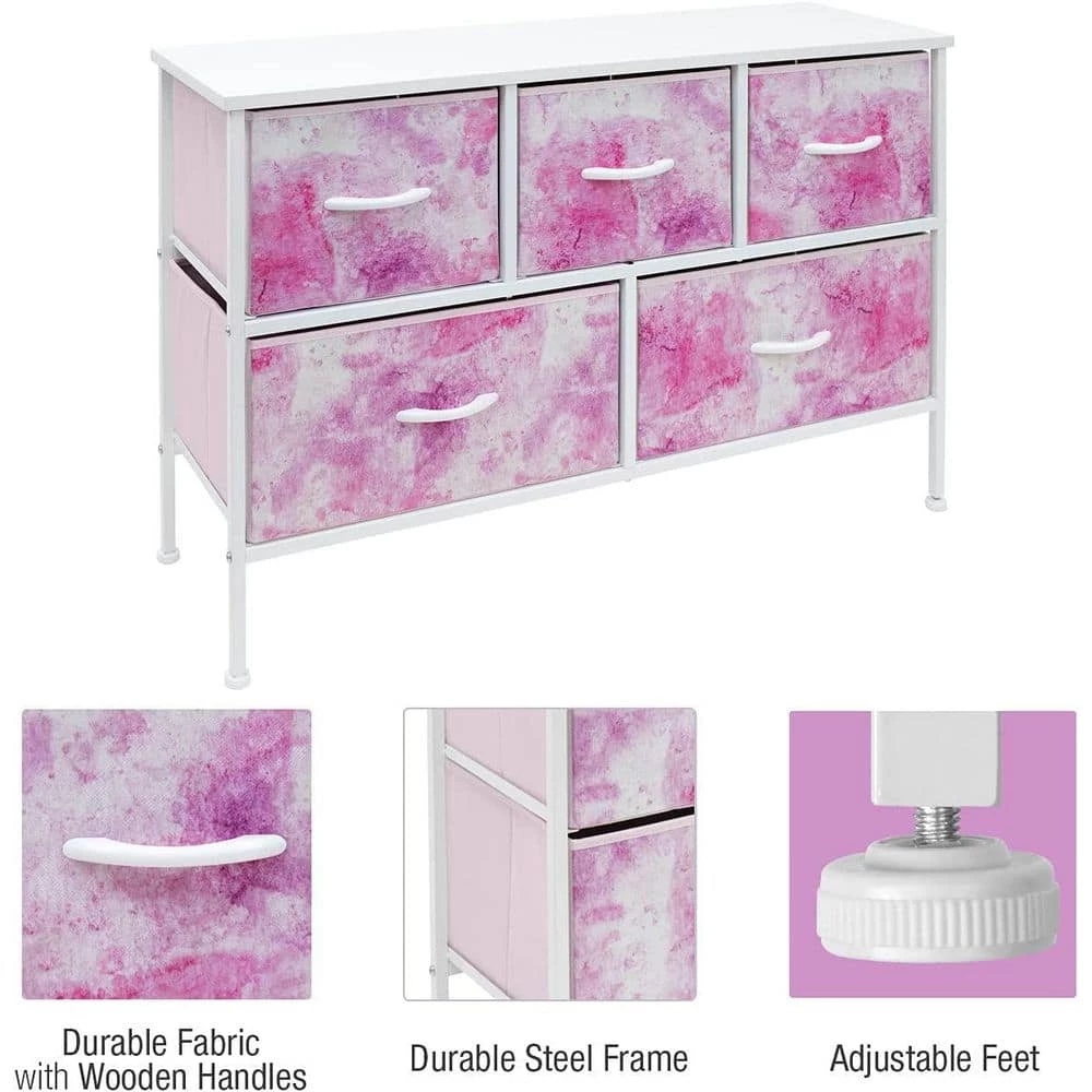 - 5-drawer dresser tie-dye pink – style meets function with this dresser chest, complete with wood surface and tie-dye print drawers