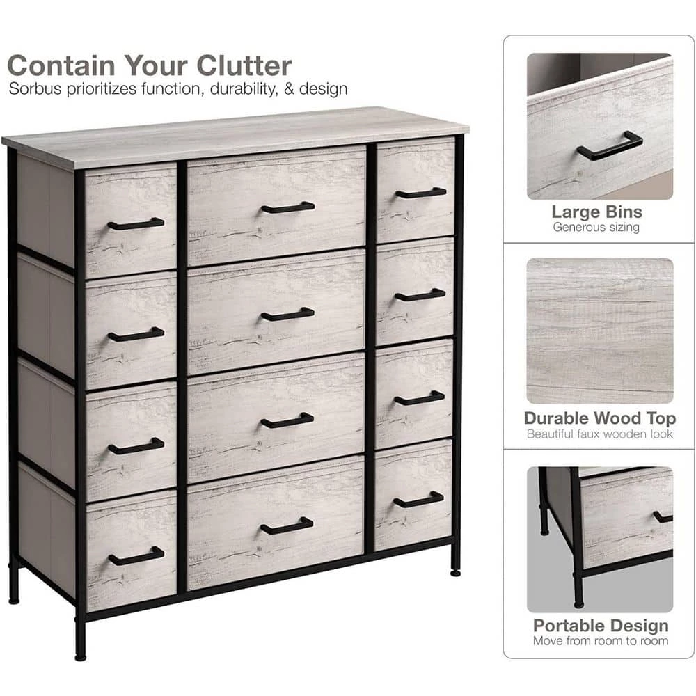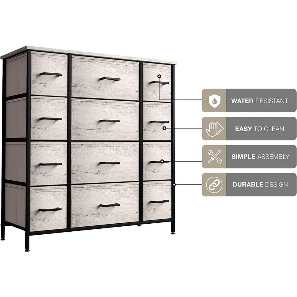 - 12-drawer dresser – the sturdy and durable steel frame offers stable support for your belongings. this dresser is perfect for storing light items such as socks and underwear as well as heavier items including jeans and jackets