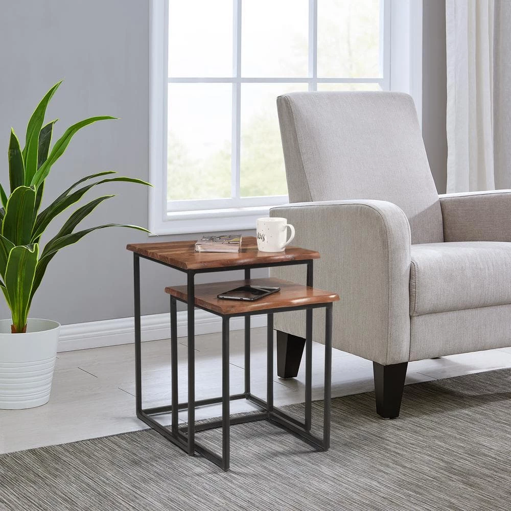 - IT’S IN THE DETAILS – Our rectangular FirsTime & Co. Live Edge Nesting End Table 2-Piece Set has a stained brown finish and is made of acacia wood