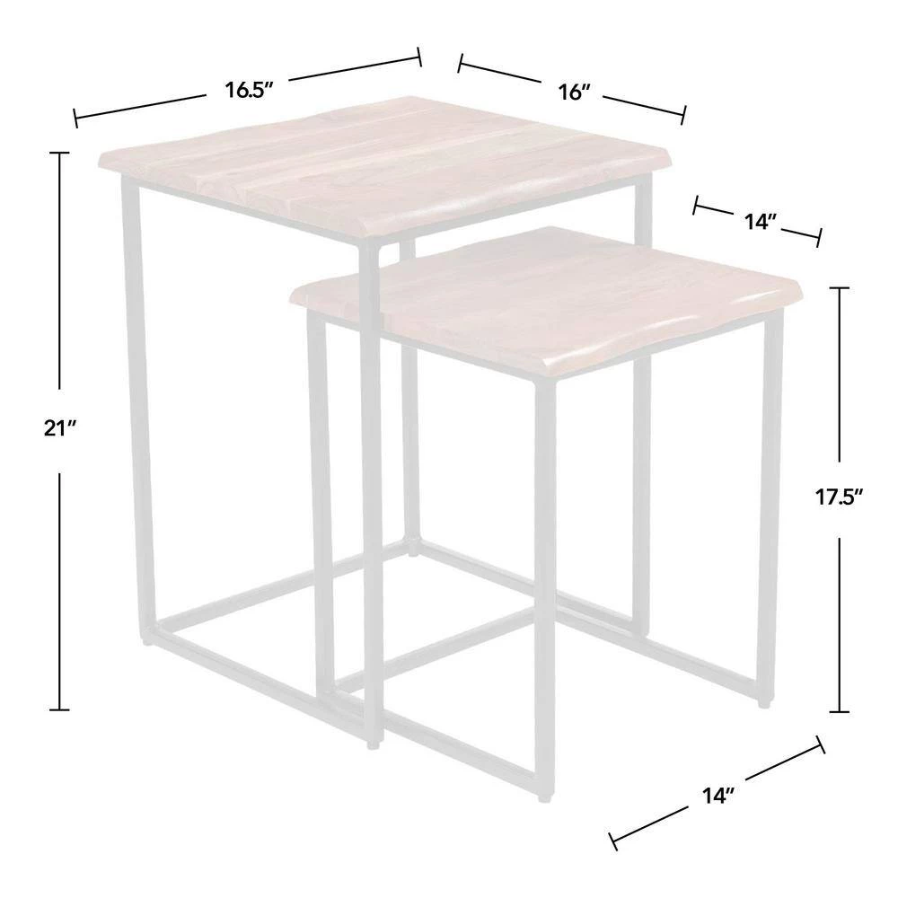 - SIZE MATTERS – Our FirsTime & Co. Live Edge Nesting End Table 2-Piece Set has a 21″ height, 16.5″ width, and 16″ length for the larger table and a 17.5″ height, 14″ width, and 14″ length for the smaller table making it the perfectly sized end table for any living, home or office space