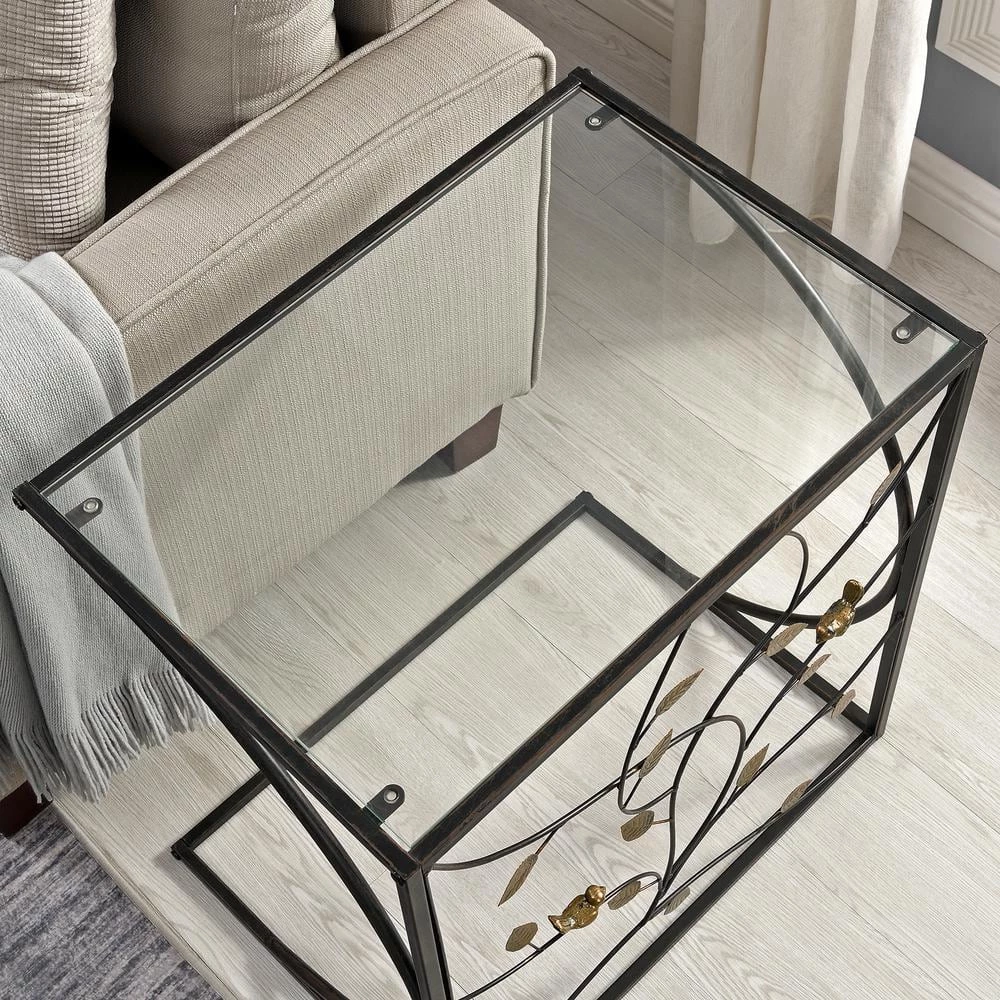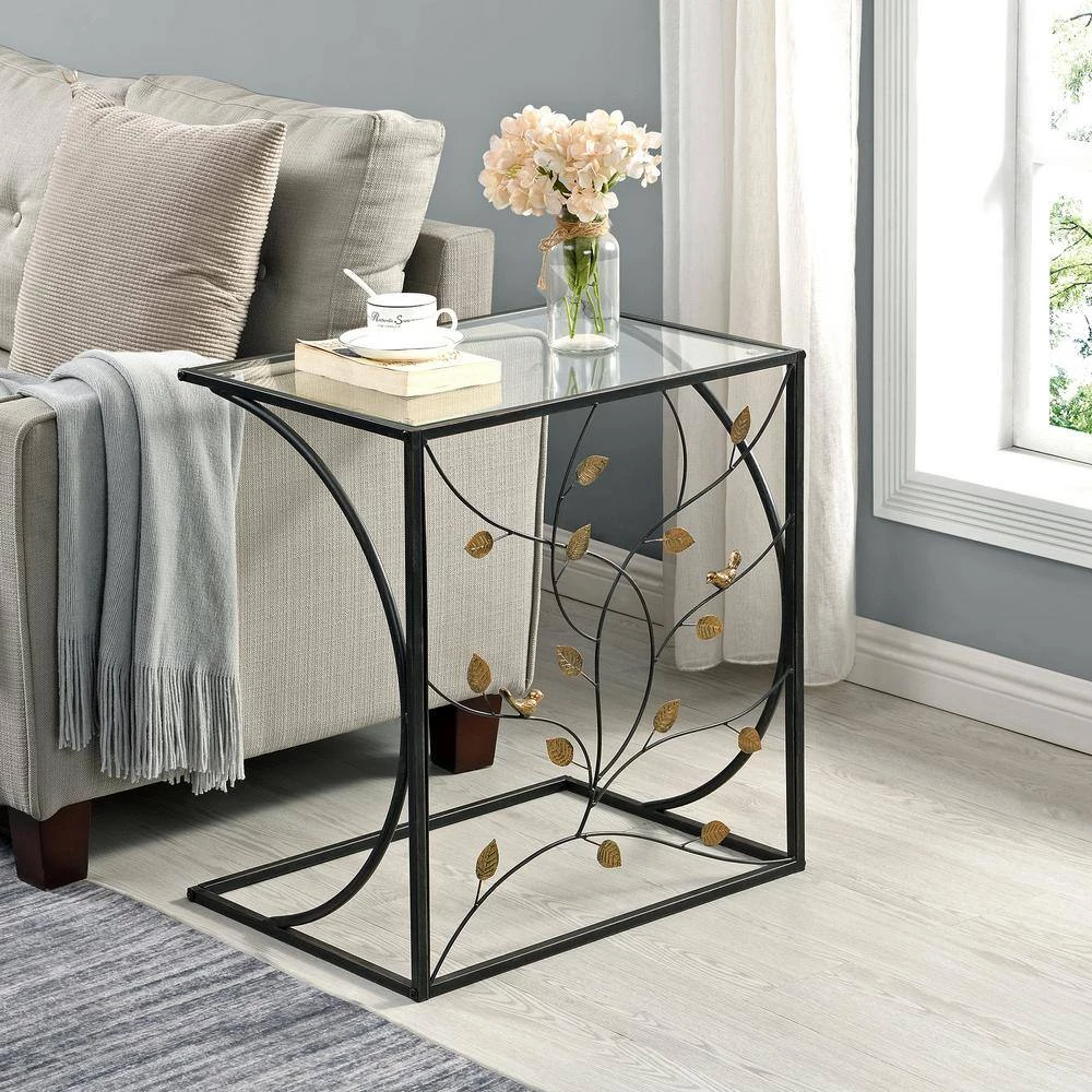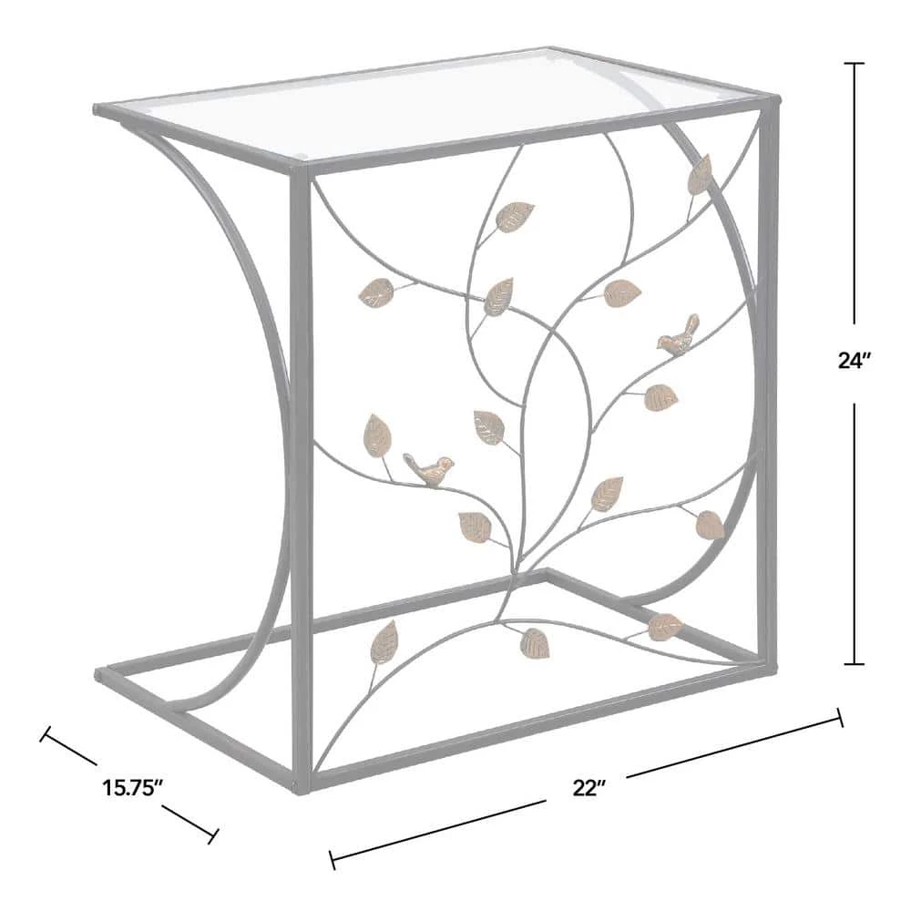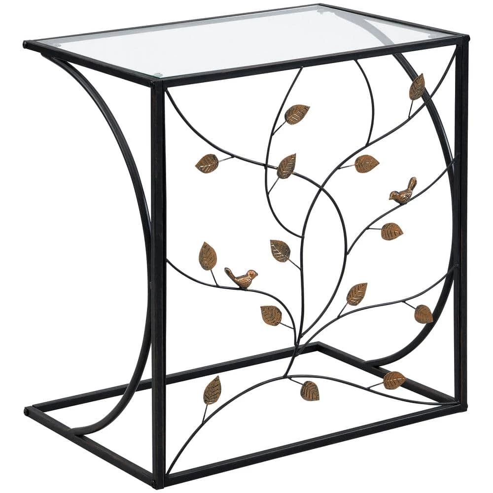 - FASHIONABLE AND FUNCTIONAL – This beautiful end table features a charming branches design accented with leaves and birds, and is complete with a glass surface that creates an airy appeal. The curved silhouette makes it perfect for your living room, bedroom, or any room