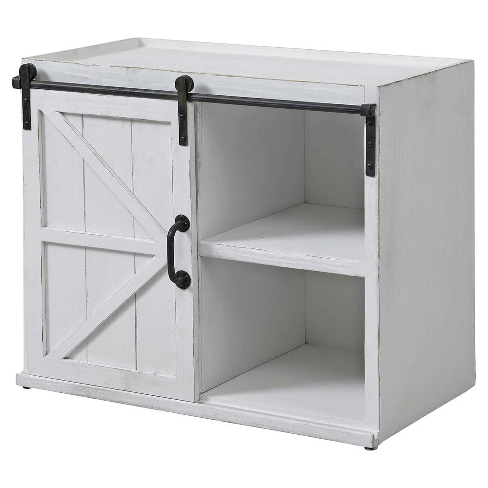 - FASHIONABLE AND FUNCTIONAL – This beautiful end table features a farmhouse-inspired sliding barn door to display favorite accents while storing blankets, games and more out of sight