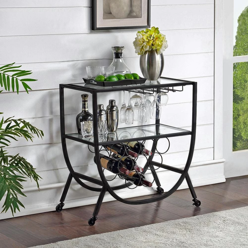 - Size matters – our firstime and co. black Catalina rounded bar cart has a 29.75 in. height, 16 in. width, and 29.25 in. length giving you enough room to hold your drinks, wine and snacks as well as making it convenient enough to place in any room