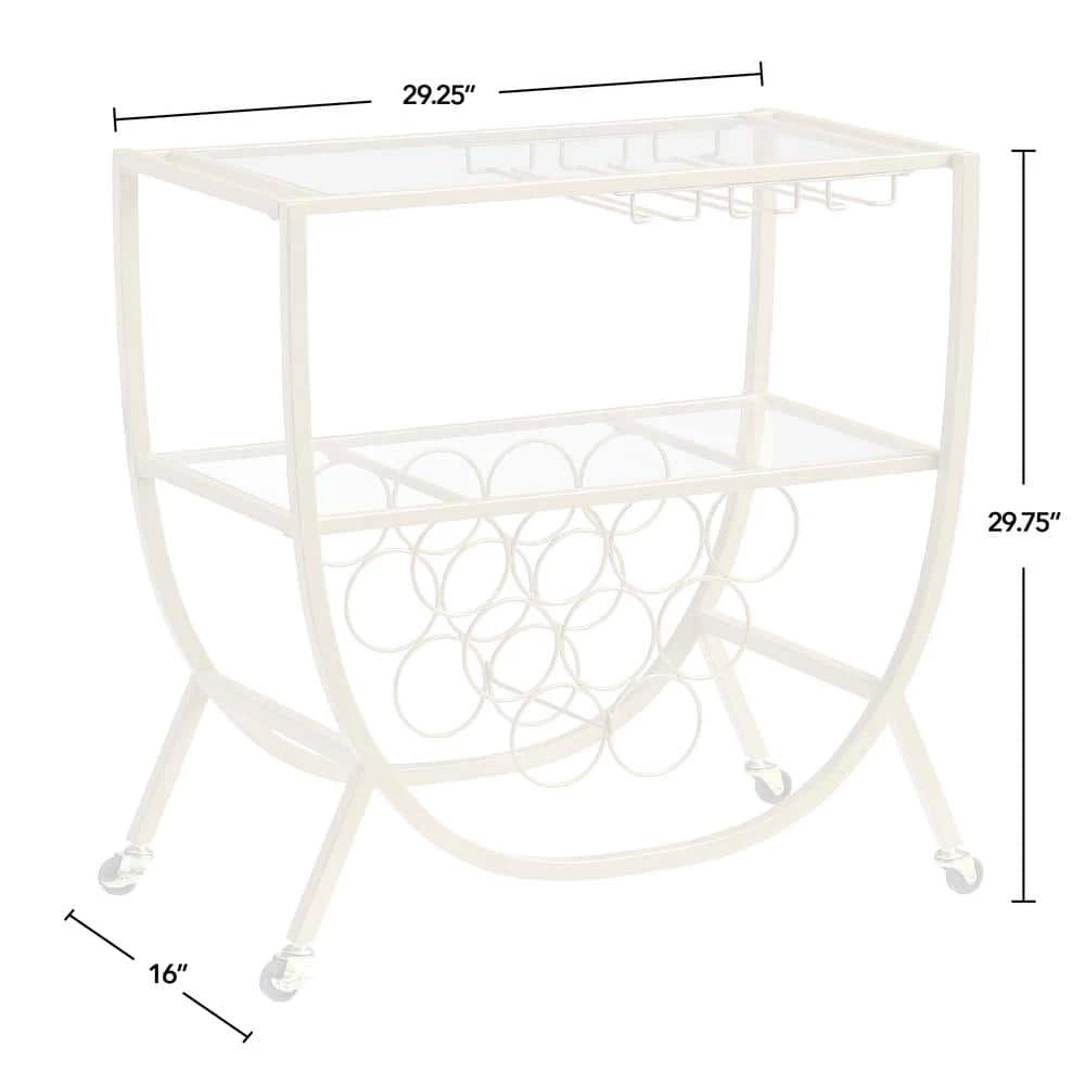 - Size matters – our firstime and co. gold Catalina rounded bar cart has a 29.75 in. height, 16 in. width, and 29.25 in. length giving you enough room to hold your drinks, wine and snacks as well as making it convenient enough to place in any room