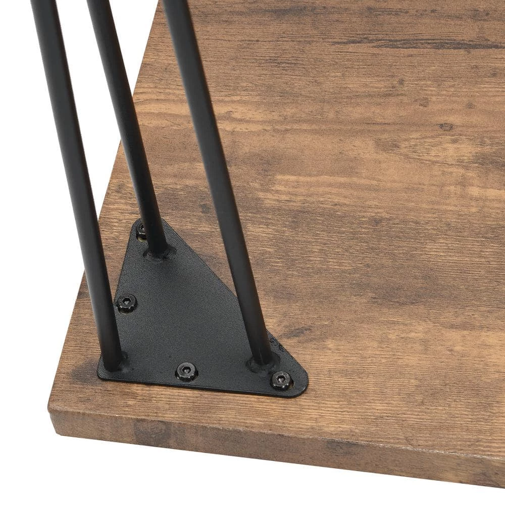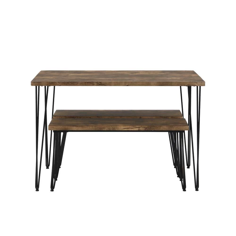 Consisting of a rectangle table and two stools, this dining set won’t taking up too much space because benches can be stored under the dining table. It is mainly made of MDF panel and iron frame. All of hardware and parts are included in one package.
