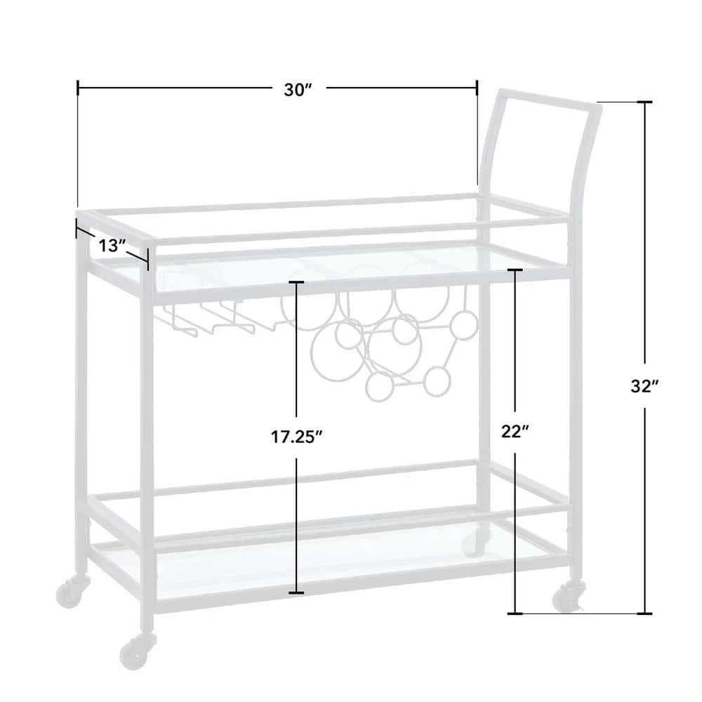 - Size matters – our FirsTime & Co., black francesca bar cart has a 32 in. H x 15 in. W x 12.25 in. D, allowing it enough room to hold your wine and snacks and making it convenient enough to place in any room