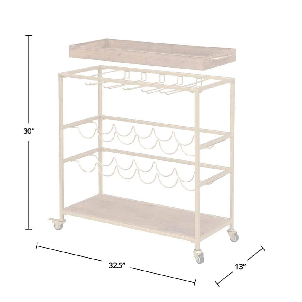 - Size matters – our FirsTime & Co., gold concord farmhouse removable tray bar cart has a 30 in. H x 32.5 in. W x 13 in. D, making it a suitable size for any living space height between glass holder and top rack: 8 in., height between bottom rack and bottom shelf: 9.8 in.