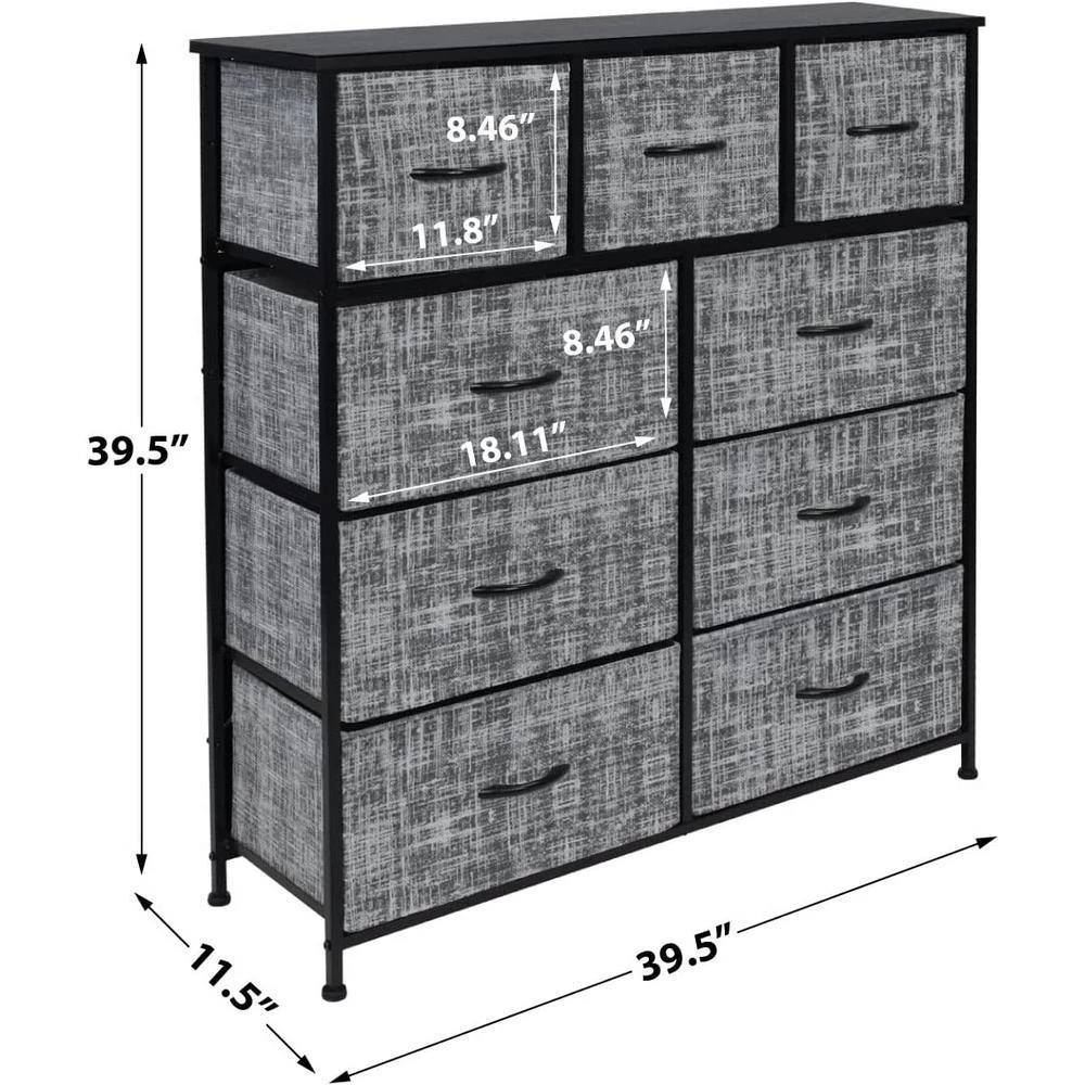 - 9-drawer dresser (gray/black) – style meets function with our dresser chest, complete with a wood surface and storage drawers – pairs beautifully with the Sorbus foldable furniture collection