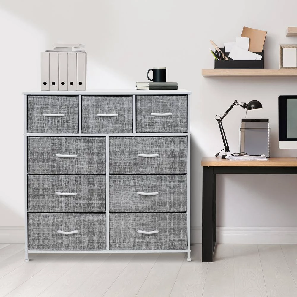 Give your household essentials a cozy landing spot with the Sorbus 9-Drawer Dresser. This beautiful dresser chest features a tabletop surface and pull-out drawers to tuck away household clutter. The thoughtful design is great for small living spaces and works equally well near the bed or sofa. Organization enthusiasts will enjoy filling each drawer with clothing, linens, and knick-knicks from around the home. The lightweight frame makes this unit easy to transport and when not in use, simply fold the fabric drawers flat for storage. Use alone as a single unit or pair with any drawer configuration from the Sorbus Furniture Collection.