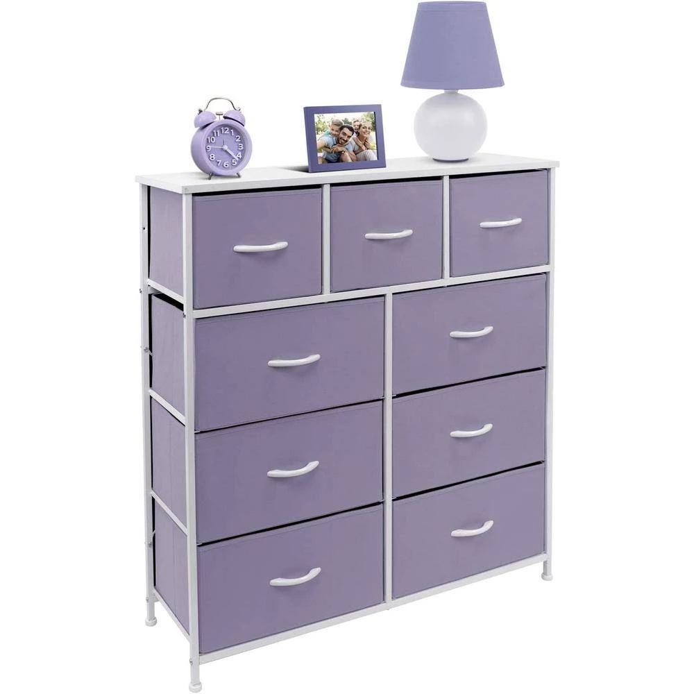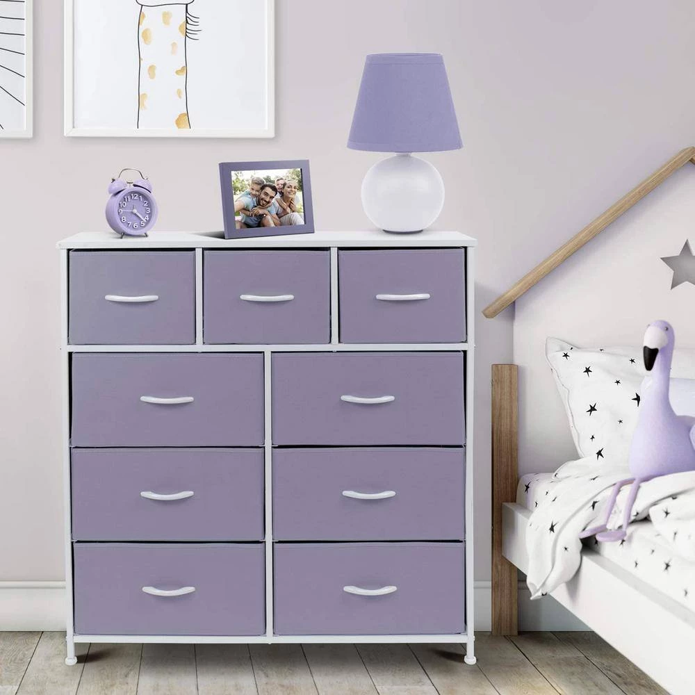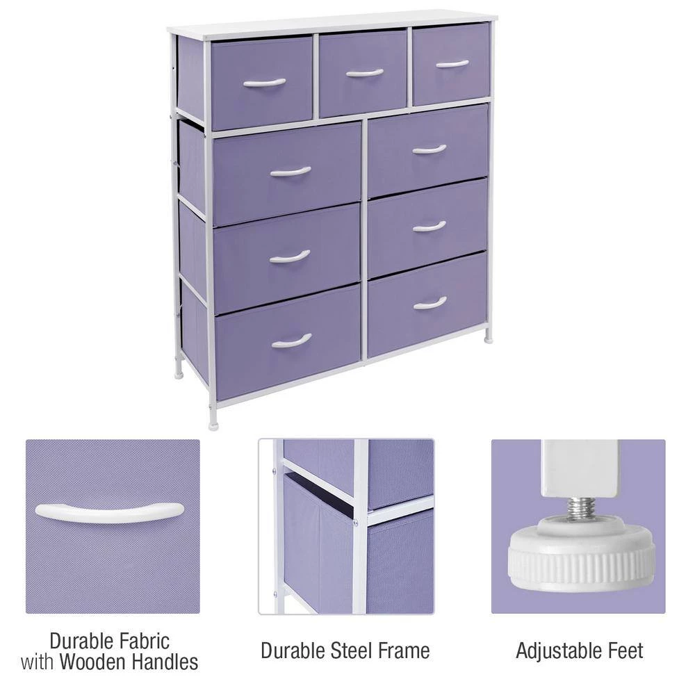 39.5 in. L x 11.5 in. W x 39.5 in. H 9-Drawer Purple Dresser with Steel Frame Wood Top Easy Pull Fabric Bins by Sorbus