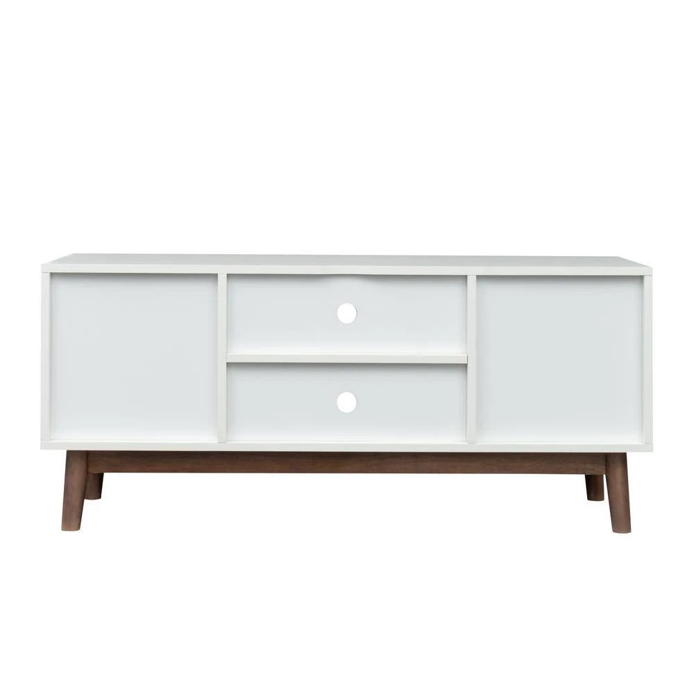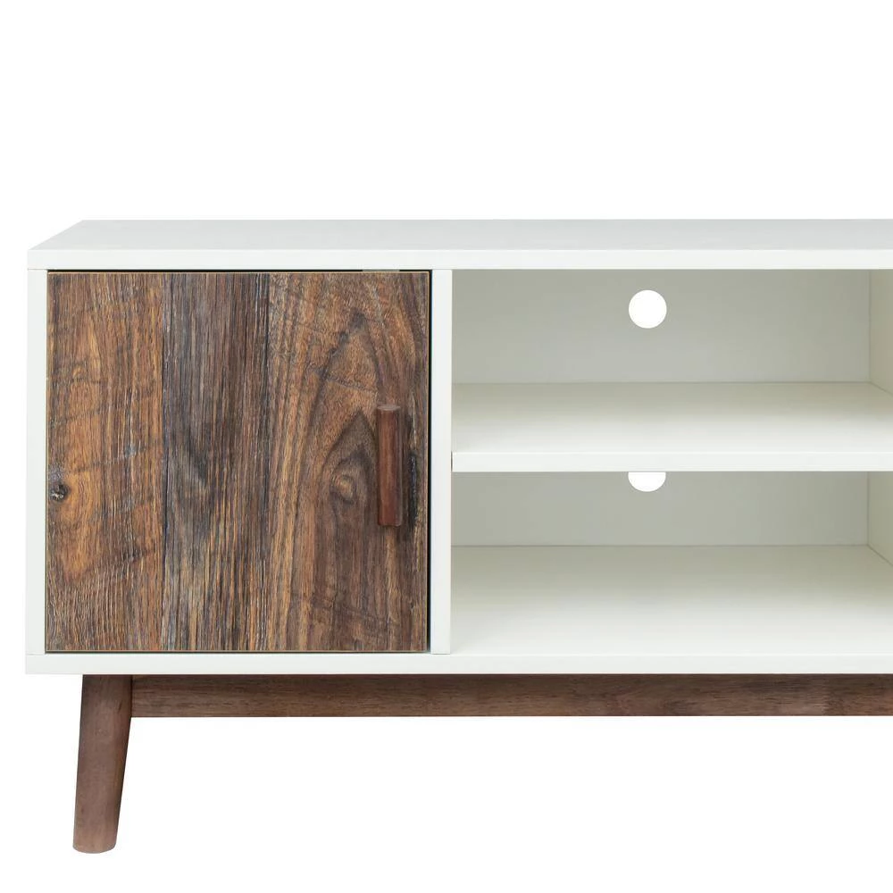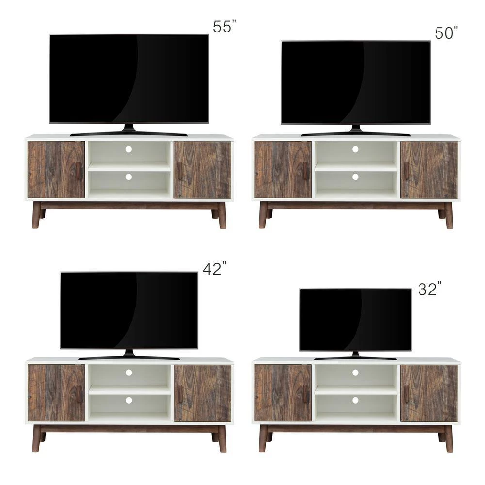 Clean line with wood texture make this TV stand sleek and trendy. Open shelves provide rooms to stereo or gaming system. Cabinets with doors can be used to store books, video game machines, routers and so on. Shipped in 1 box.