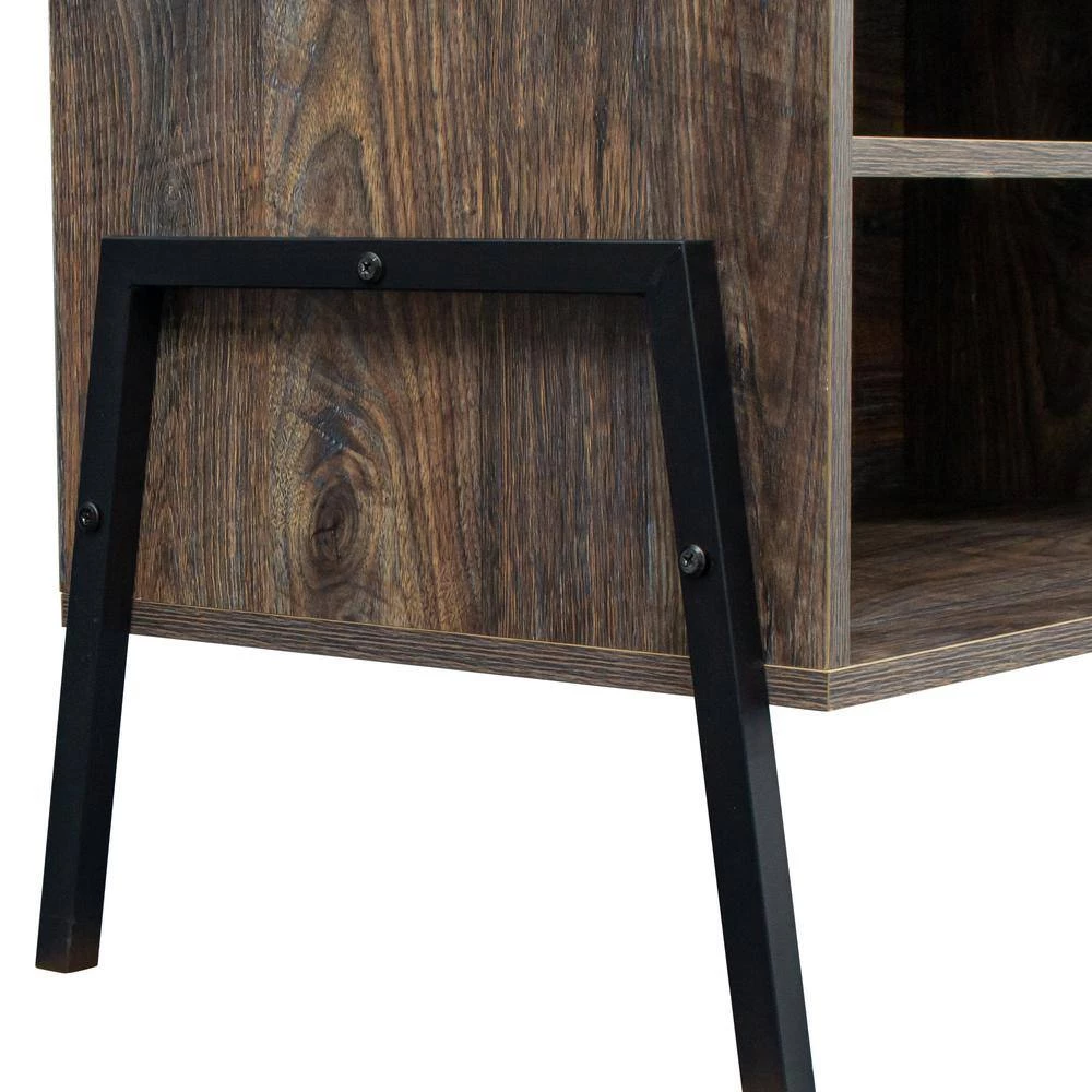 Clean line with wood texture make this TV stand sleek and trendy. Open shelves provide rooms to stereo or gaming system. A cabinets with doors can be used to store books, video game machines, routers and so on. Black metal legs ensure the stability and durability of TV stand.