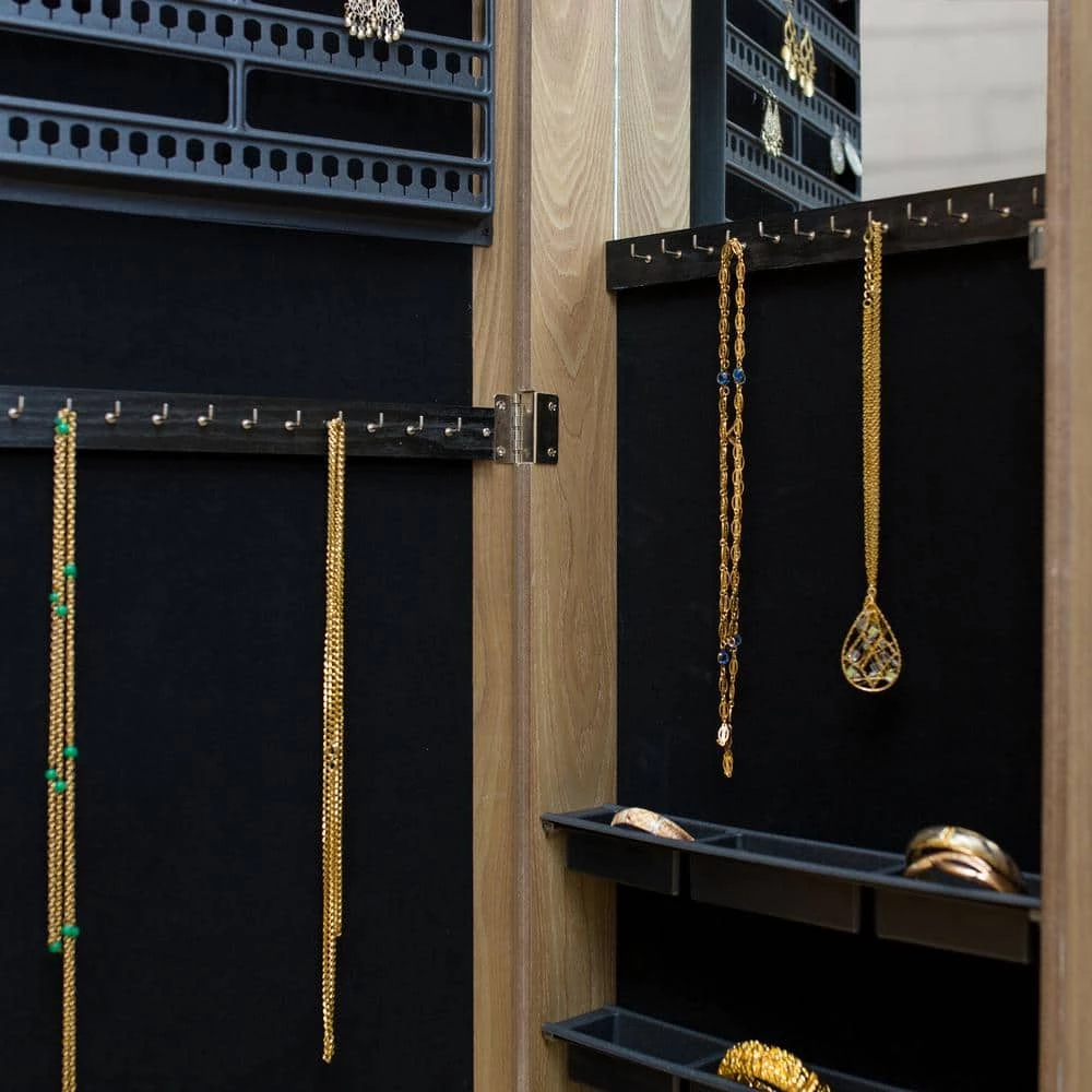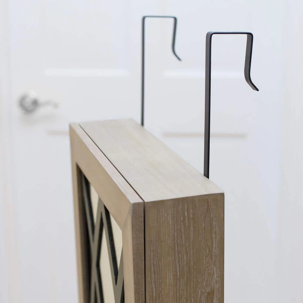 - HANG IN THERE – This jewelry armoire is designed to be hung on the wall. It comes with over-the-door hooks as well as keyholes if you wish to hang it on the wall.