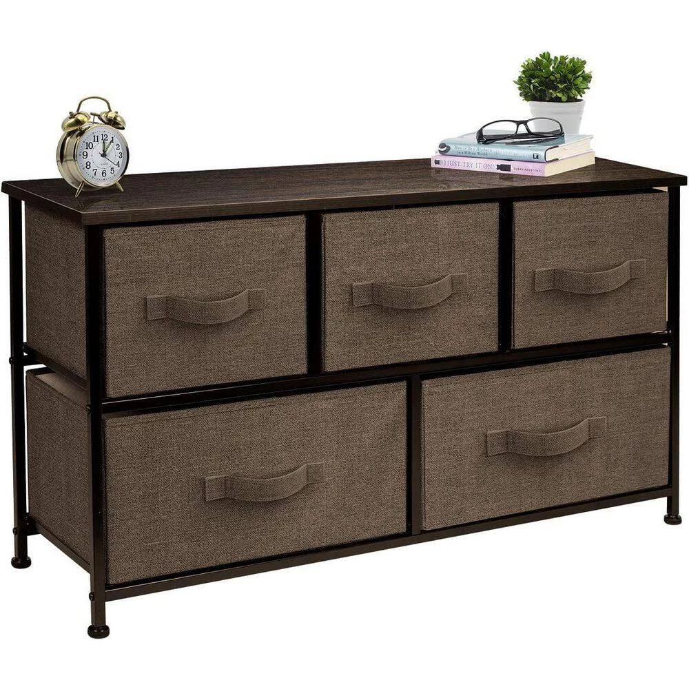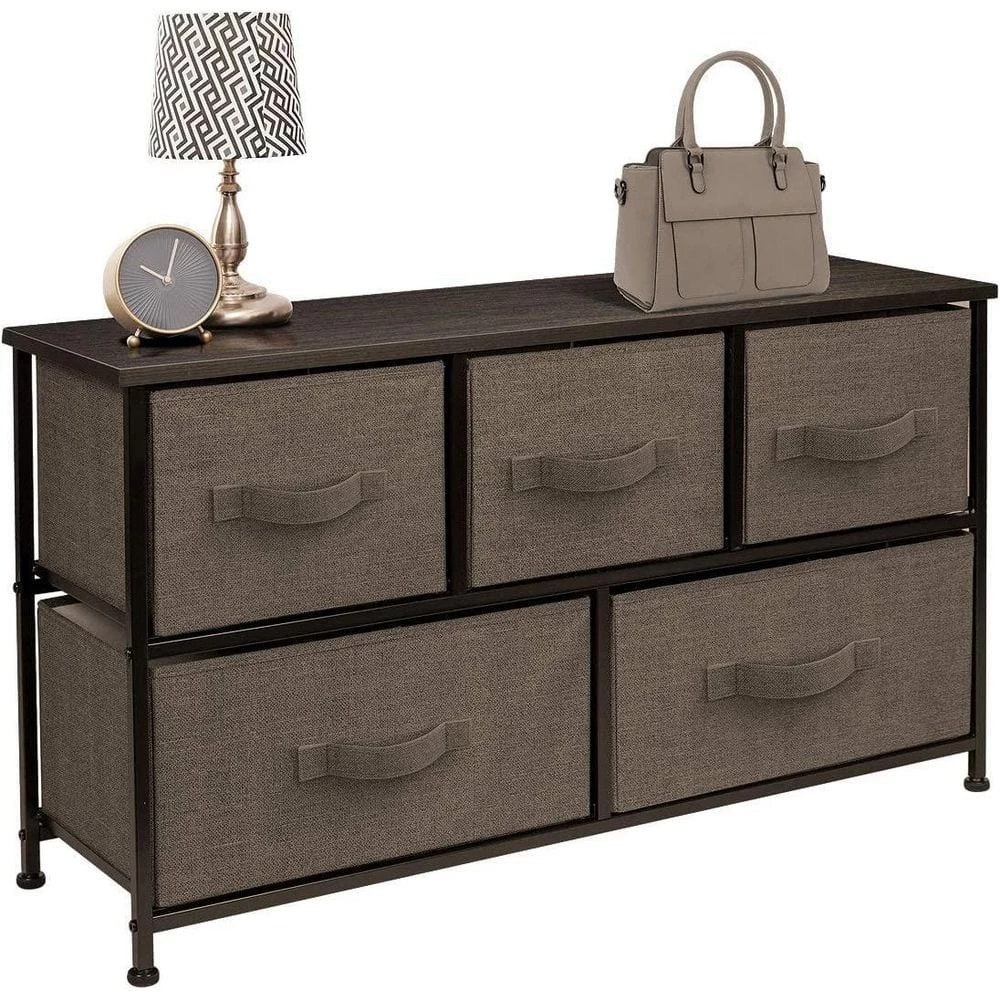 Give your household essentials a cozy landing spot with the Sorbus 5-drawer Dresser. this beautiful dresser chest features a tabletop surface and pull-out-drawers to tuck away household clutter. the thoughtful design is great for small living spaces and works equally well near the bed or sofa. Organization enthusiasts will enjoy filling each-drawer with clothing, linens, and knick-knicks from around the home. the lightweight frame makes this unit easy to transport and when not in use, simply fold the fabric-drawers flat for storage. Use alone as a single unit or pair with any-drawer configuration from the Sorbus Furniture Collection. with everything you need right by your side, getting organized has never looked better.