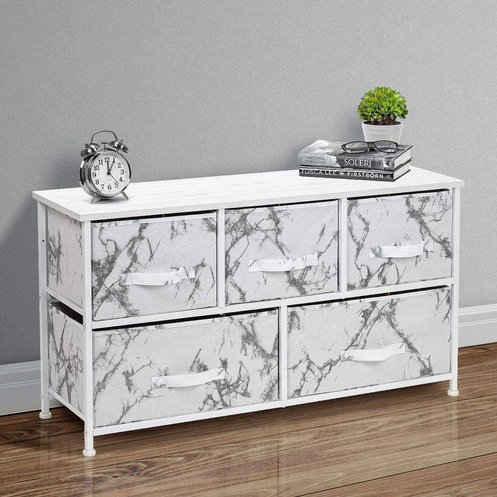 - 5-drawer dresser marble white with white frame – style meets function with our dresser chest, complete with a wood surface and storage-drawers – pairs beautifully with the sorbus foldable furniture collection