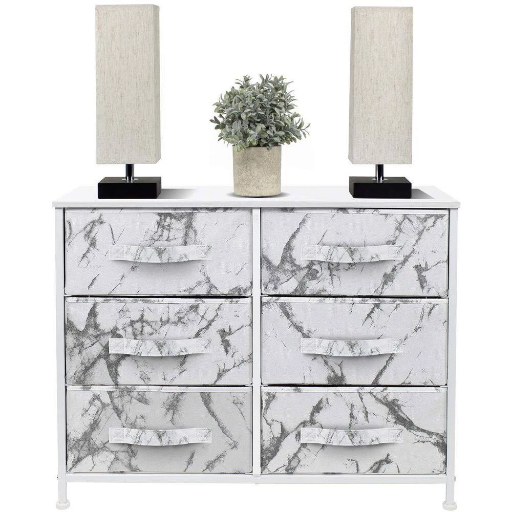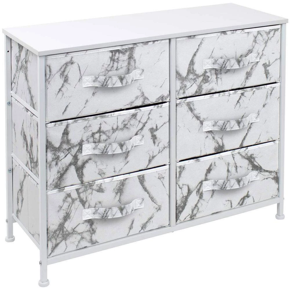 - 6-drawer dresser white marble, white frame – style meets function with our dresser chest, complete with a wood surface and storage-drawers – pairs beautifully with the sorbus foldable furniture collection
