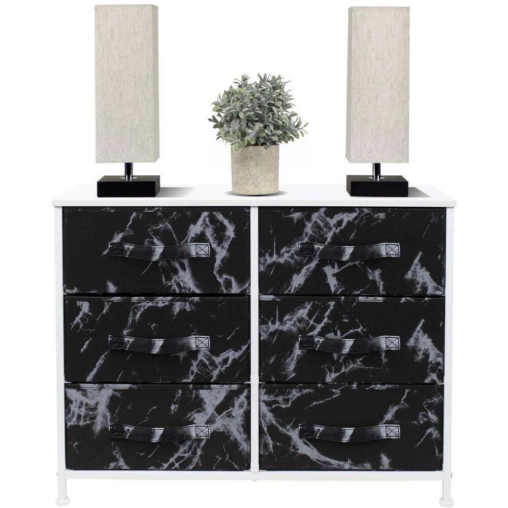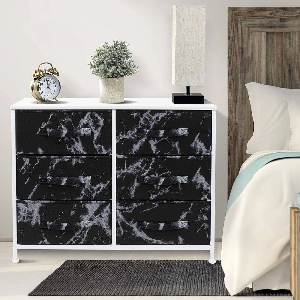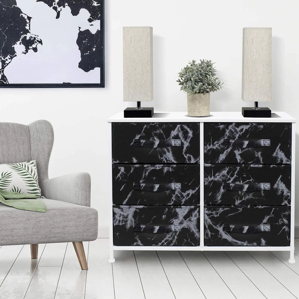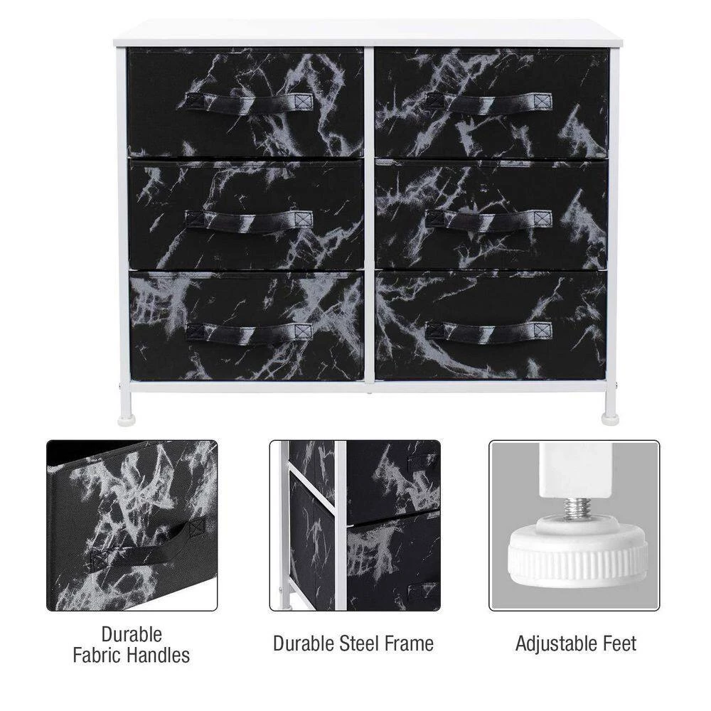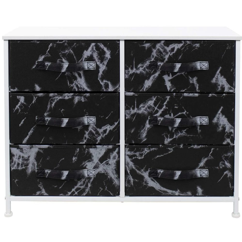 - 6-drawer dresser black marble, white frame – style meets function with our dresser chest, complete with a wood surface and storage-drawers – pairs beautifully with the sorbus foldable furniture collection