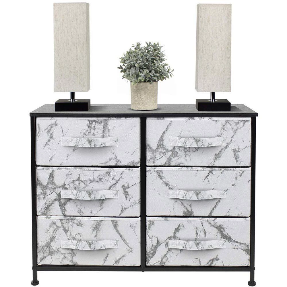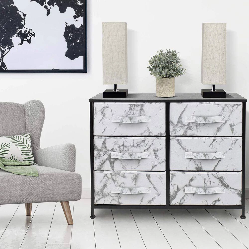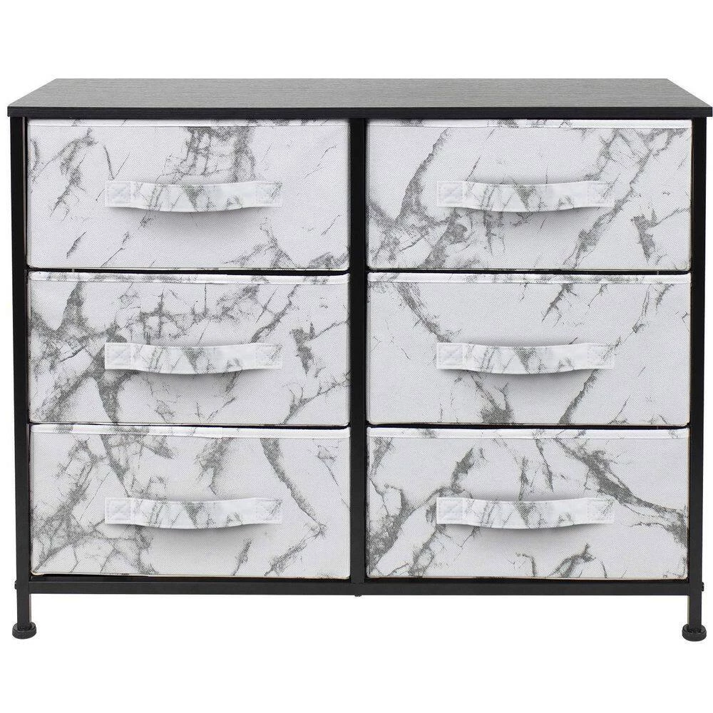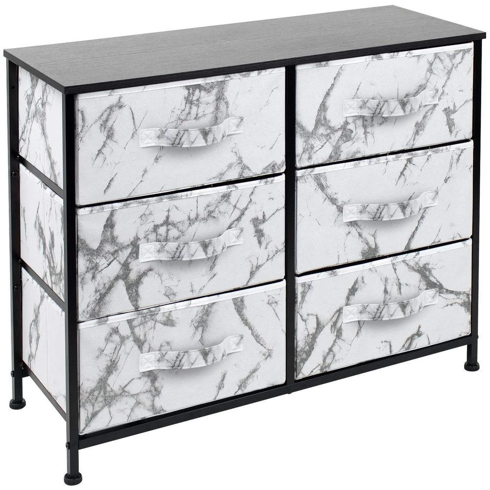 - 6-drawer dresser white marble, black frame – style meets function with our dresser chest, complete with a wood surface and storage-drawers – pairs beautifully with the sorbus foldable furniture collection