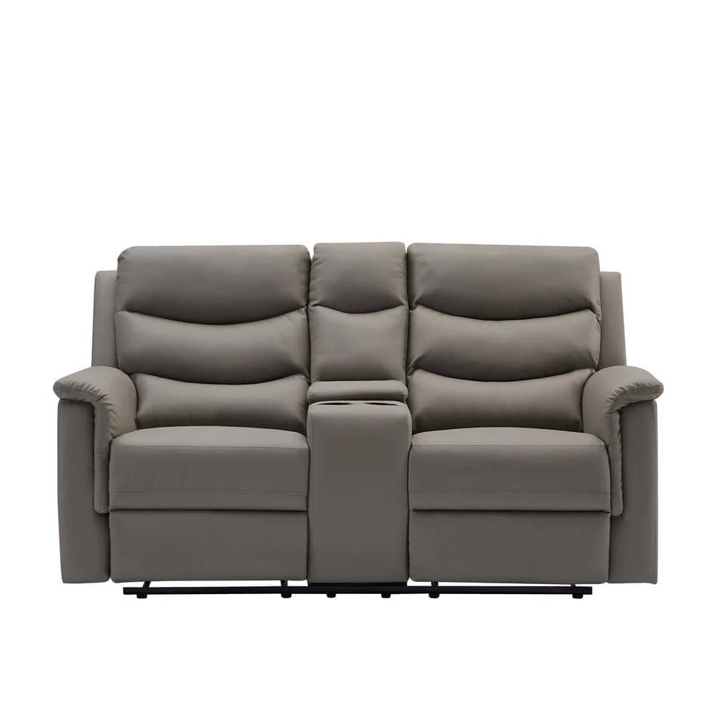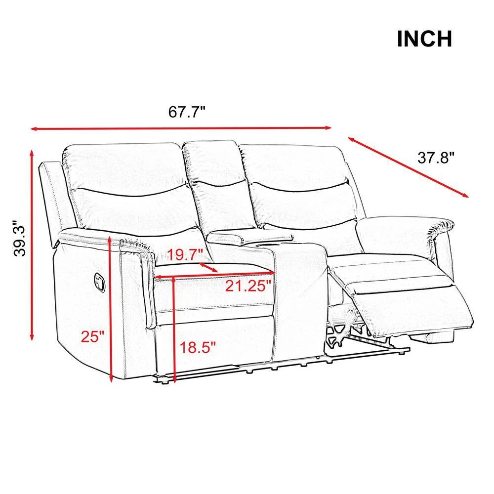 This manual reclining loveseat is made of solid wood, manufactured wood and metal. The seat is constructed of solid wood, pocket spring, foam and PU leather. The back is filled with foam. All contens are packed in 1 boxes.