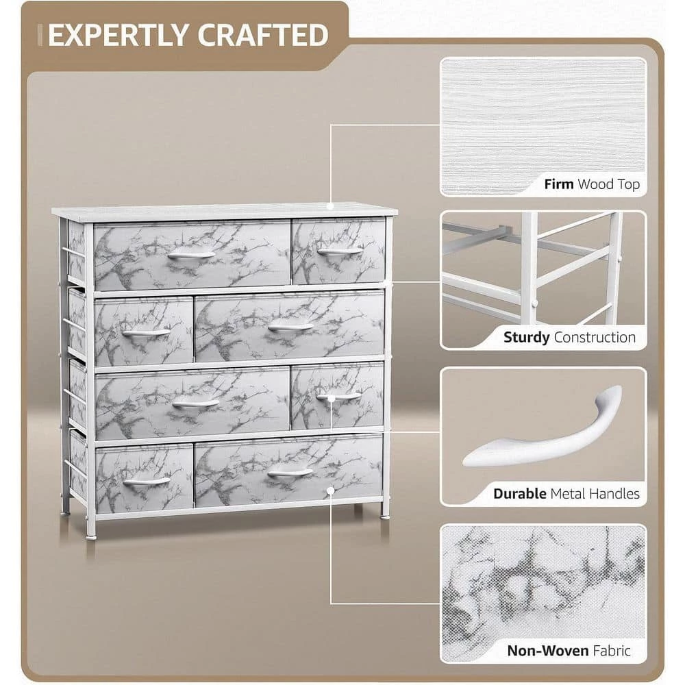 - 8-drawer dresser marble white – white frame – style meets function with our dresser chest, complete with a wood surface and storage-drawers – pairs beautifully with the Sorbus foldable furniture collection
