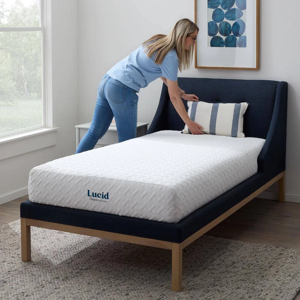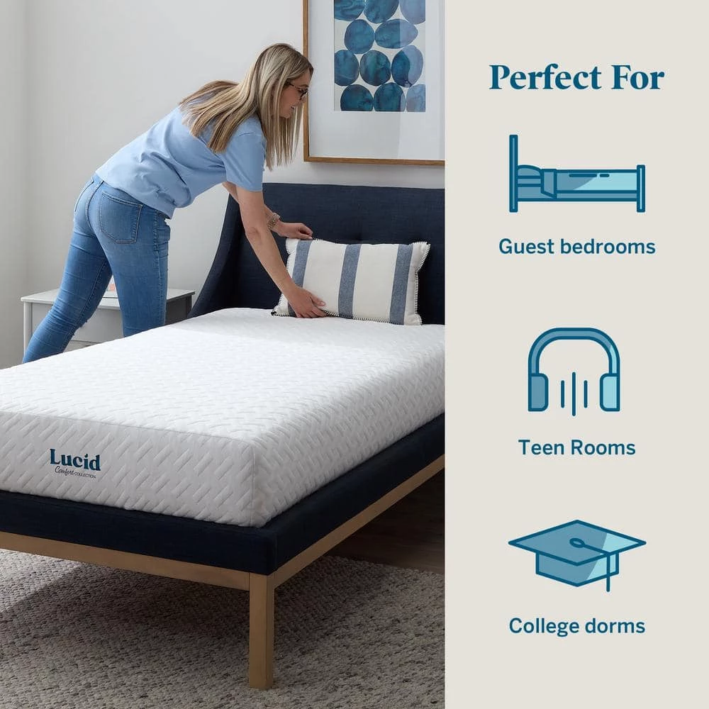 With Lucid Comfort Collections mattresses, you can find a bed for the whole family. At an affordable price with comfort that lasts, the Lucid 8″ Plush Gel Memory Foam Mattress is a great go-to. Two inches of gel memory foam and six inches of supportive base foam create a great support for any young adult or guest that may stay over at your home. This mattress in a box comes compressed and rolled for easy shipping. Plus, this 8″ plush Twin XL mattress is great for a college dorm, putting your mind at ease when your undergrad heads off to college. Comfort awaits.