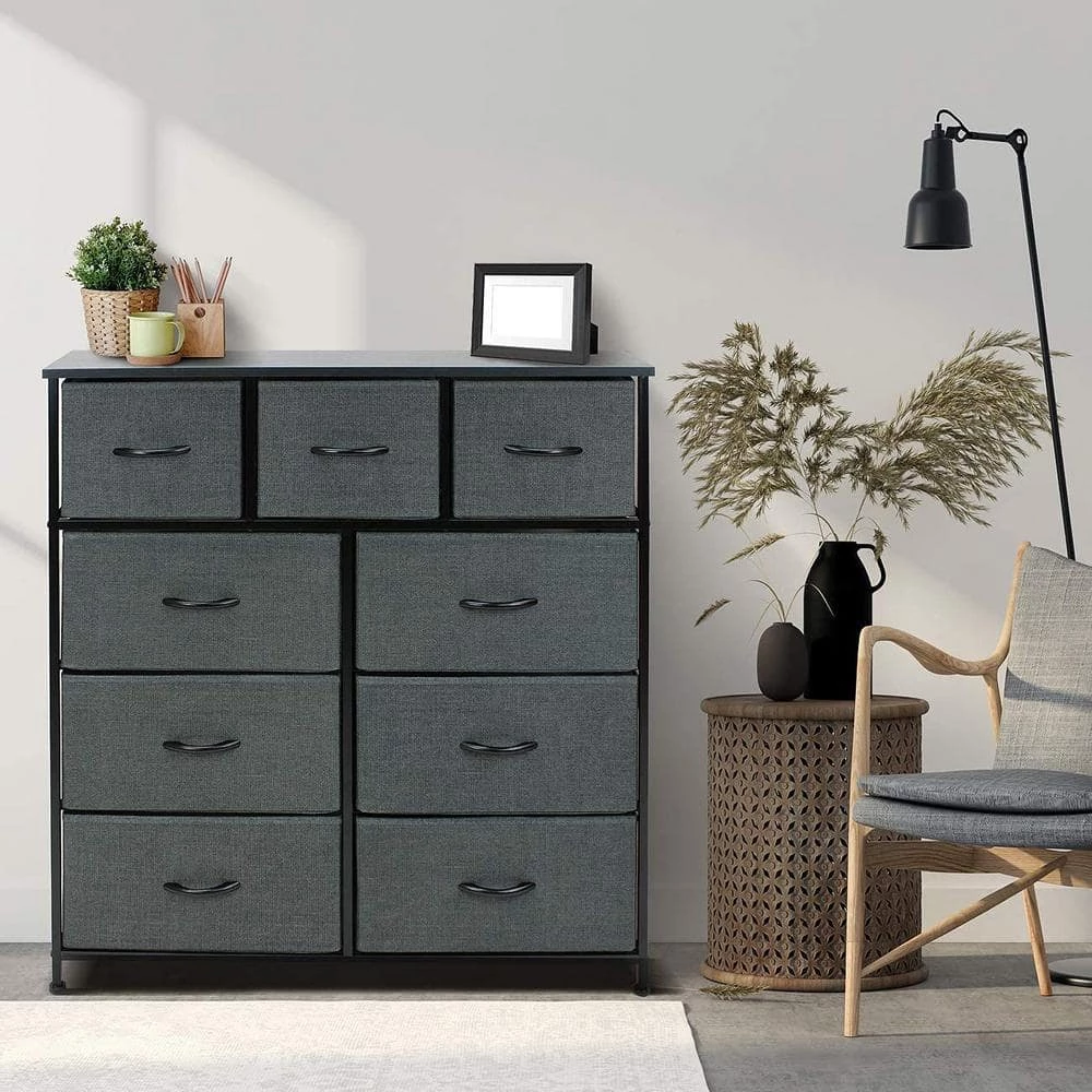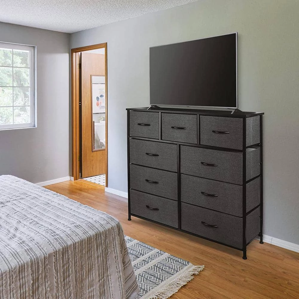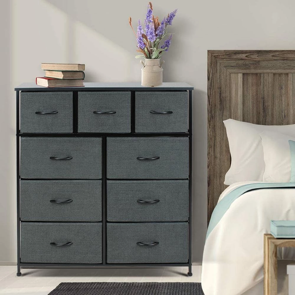 - 9-drawer dresser (black) – style meets function with our dresser chest, complete with a wood surface and storage drawers – pairs beautifully with the Sorbus foldable furniture collection