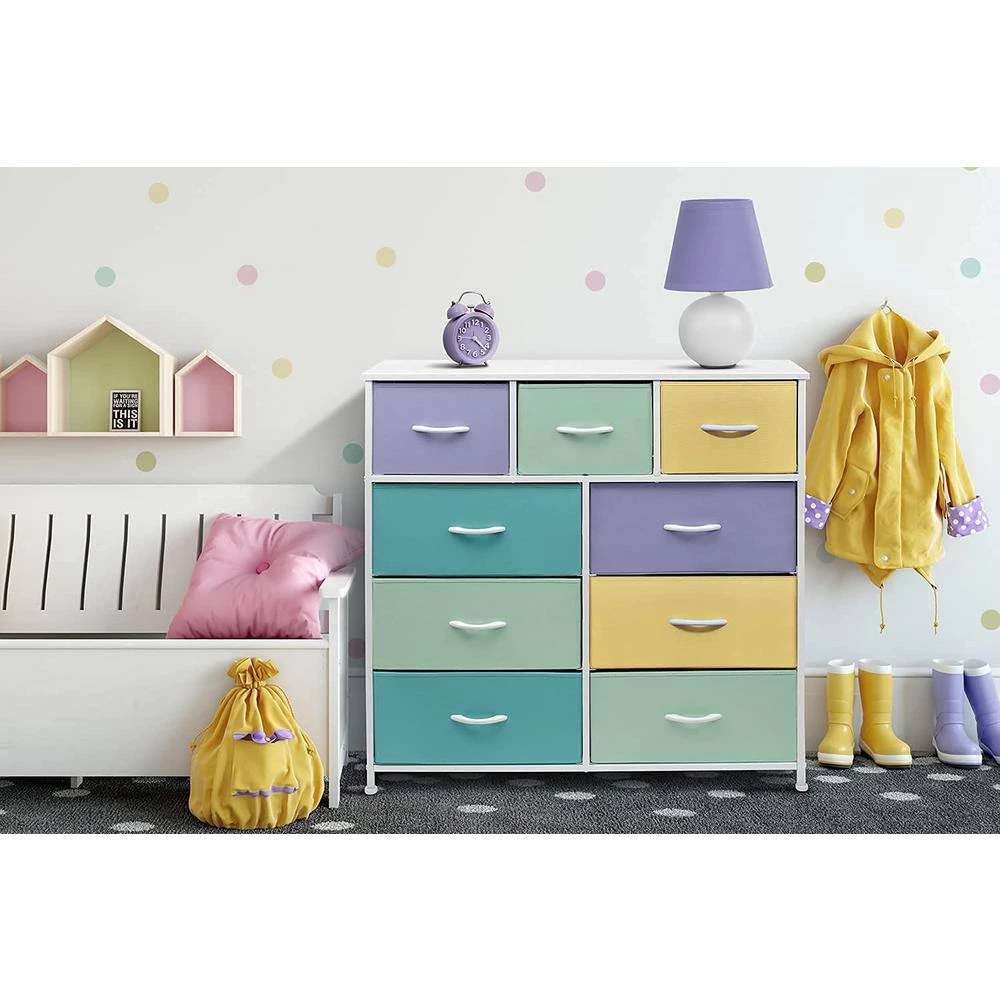 9-Drawer Multi Pastel Steel Frame Dresser Wood Top Easy Pull Fabric Bins 39.5 in. L x 11.5 in. W x 39.5 in. H by Sorbus