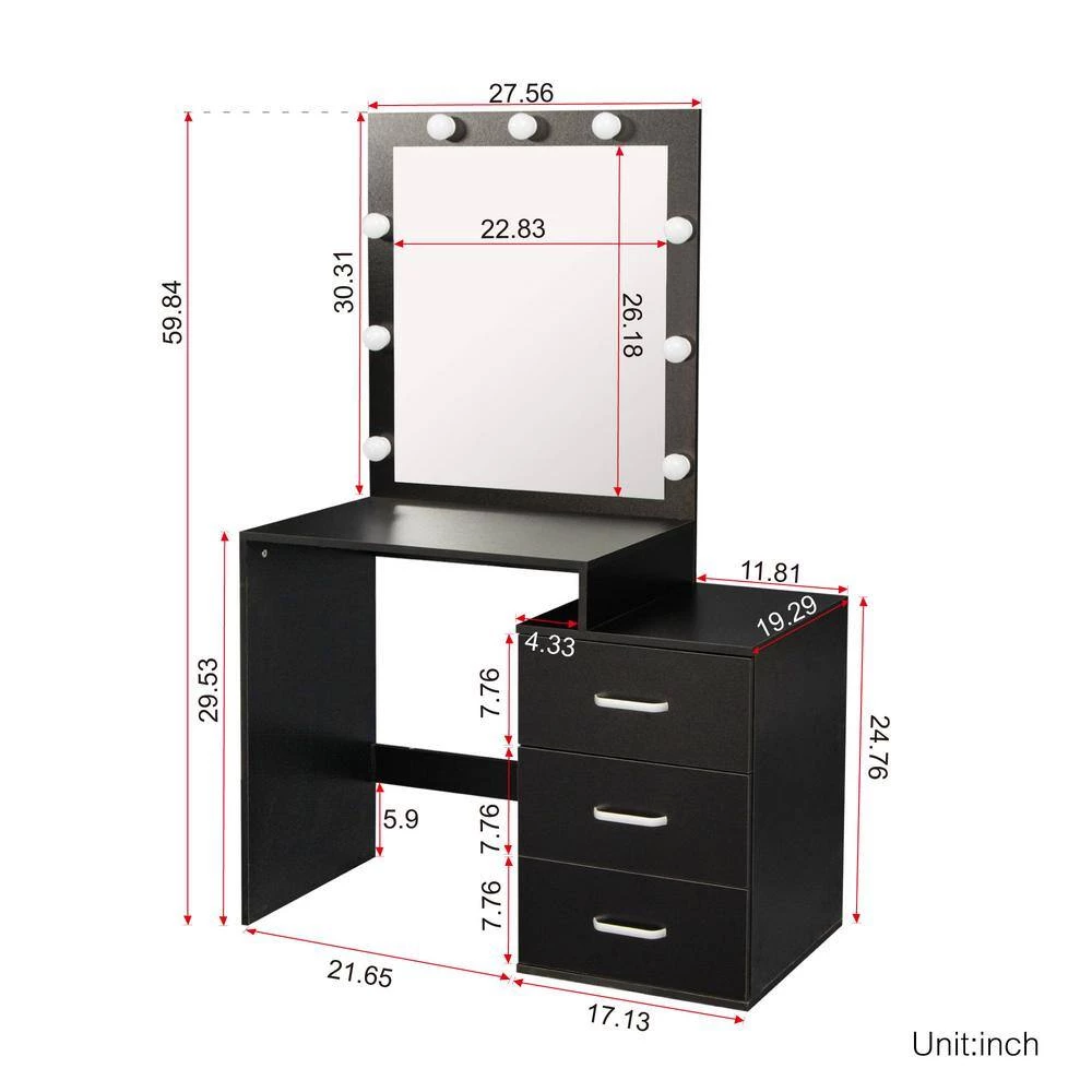 - Bedroom vanity table with Led light bulbs