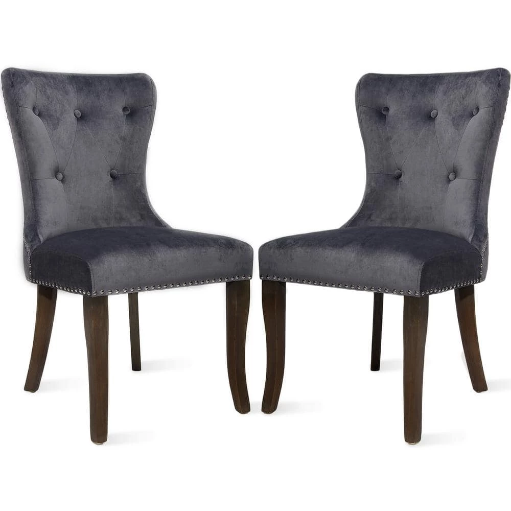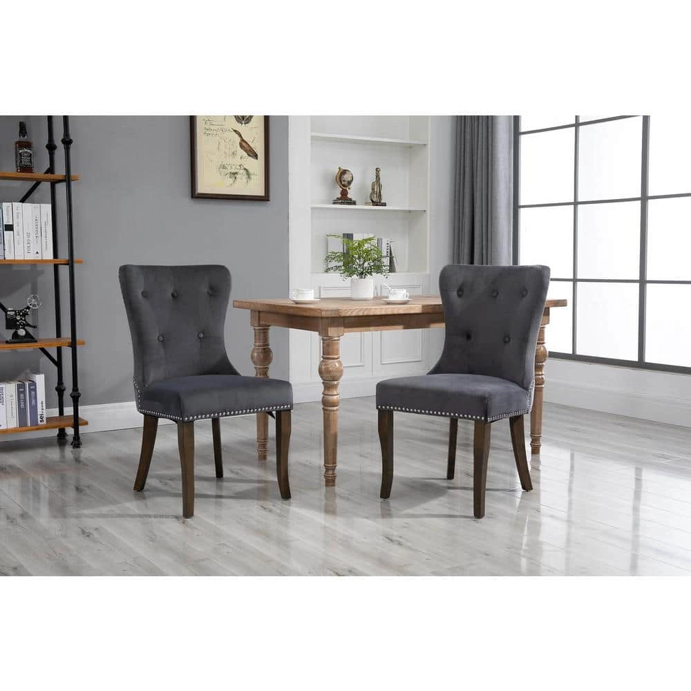 Put the dining chair in the modern style of the Middle Ages. Quality test of Dutch velvet interior. Silver nail headdress details and classic button tufting create an elegant appearance.