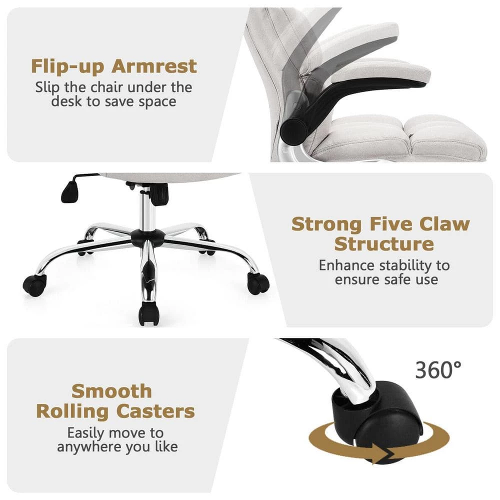 This ergonomic chair is ideal for home, office, conference room, and reception room. Ergonomic backrest allows you to lean against it to relieve back fatigue. Breathable linen fabric and high-density sponge bring comfortable sitting experience.