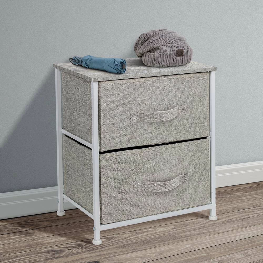 - Smart and stylish design – sleek vertical storage – made with strong steel frame and durable mdf wood top with smooth white finish – light gray drawers made of breathable, non-woven fabric – wipe clean – minimal assembly required – hardware and instructions included – measures approximately 17.75 in. l x 11.87 in. w x 20 in. h