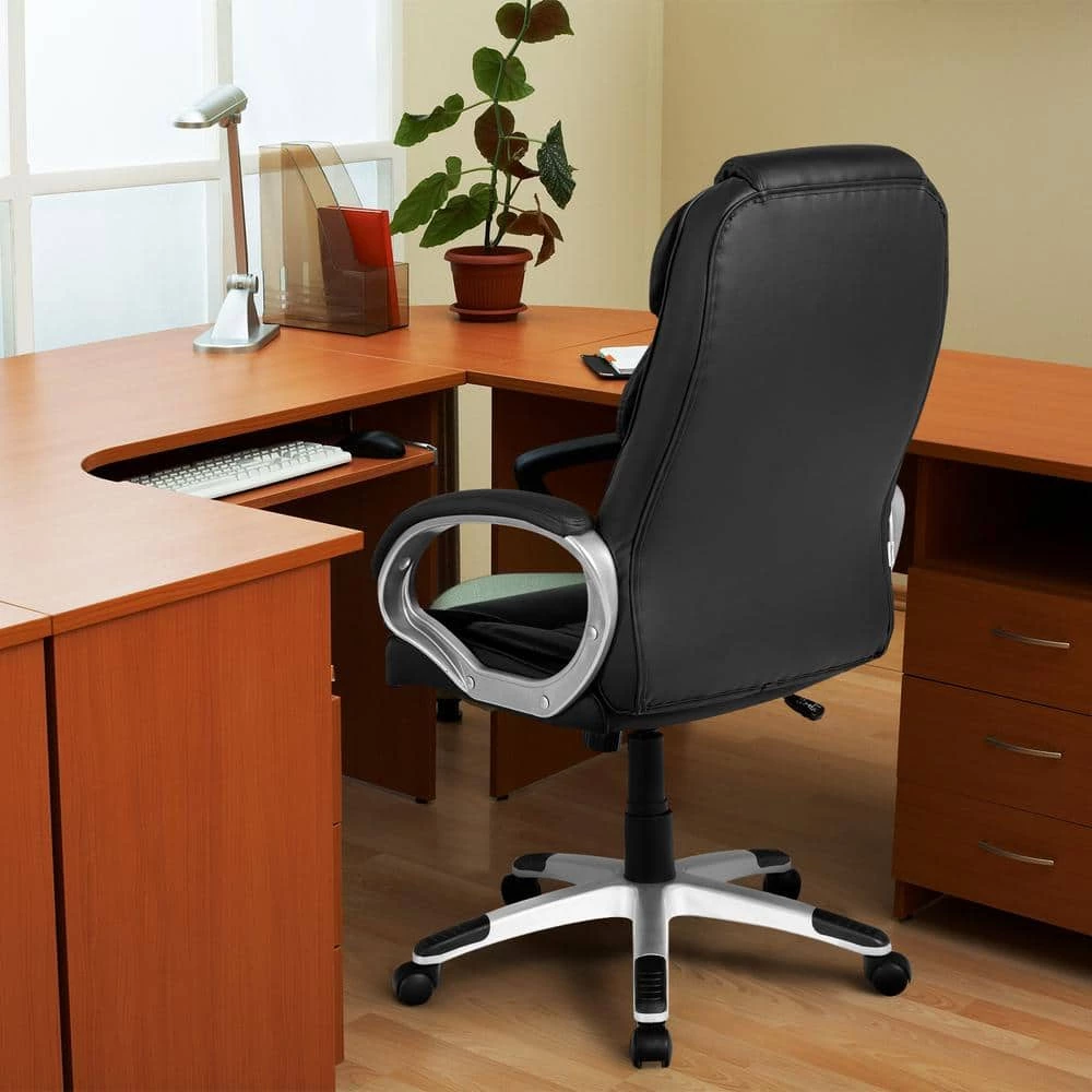 This office chair is ideal for office, home, meeting room or reception center. Featuring ergonomic curved backrest, it supports your neck, back, and waist well. Smooth rolling casters allow you to move flexiblly without any damage to floor.