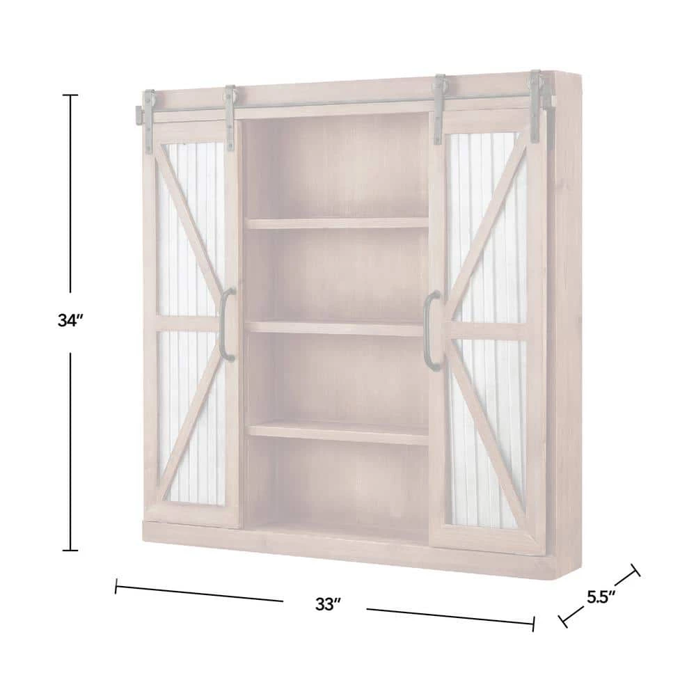 - Size matters our FirsTime & Co. westerly farmhouse barn door cabinet has a 34 in. H x 33.5 in. W x 5.5 in. D, making it a suitable storage solution for any living space.